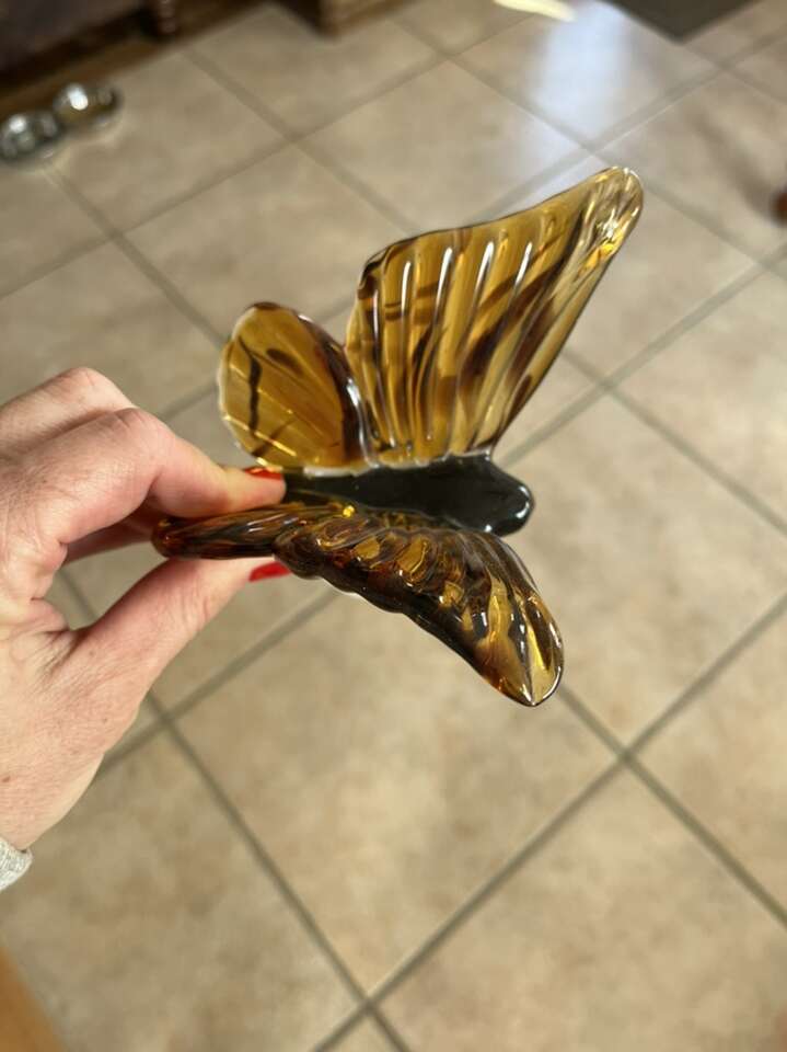 Dynasty Gallery 1951 Glass monarch butterfly 4 inches long 3 1/2 inches tall