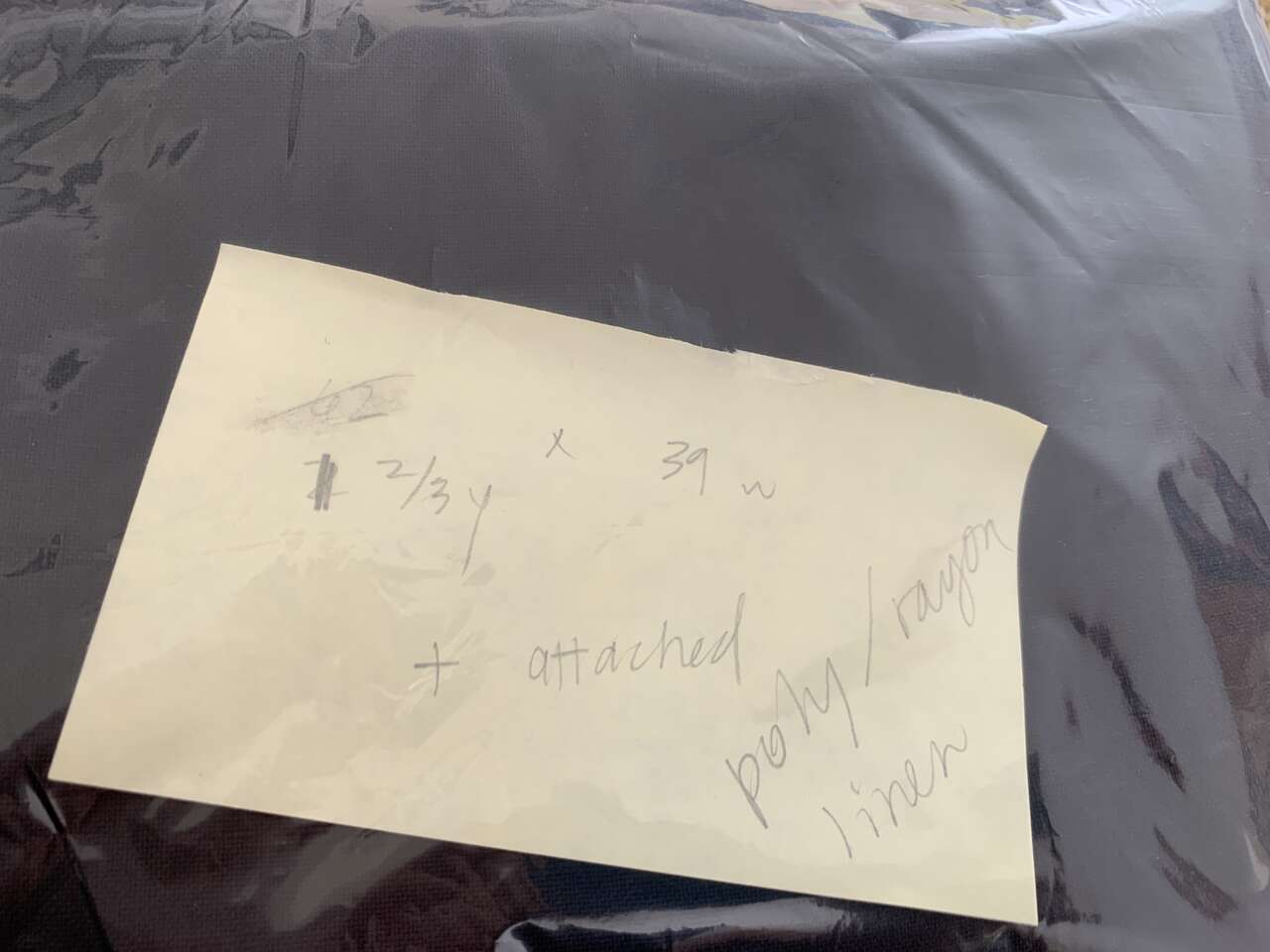Black poly/rayon linen, 1 2/3 yd x 39” wide + attached remnant, $3