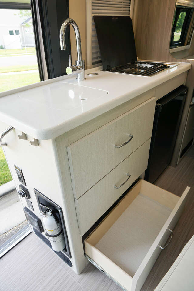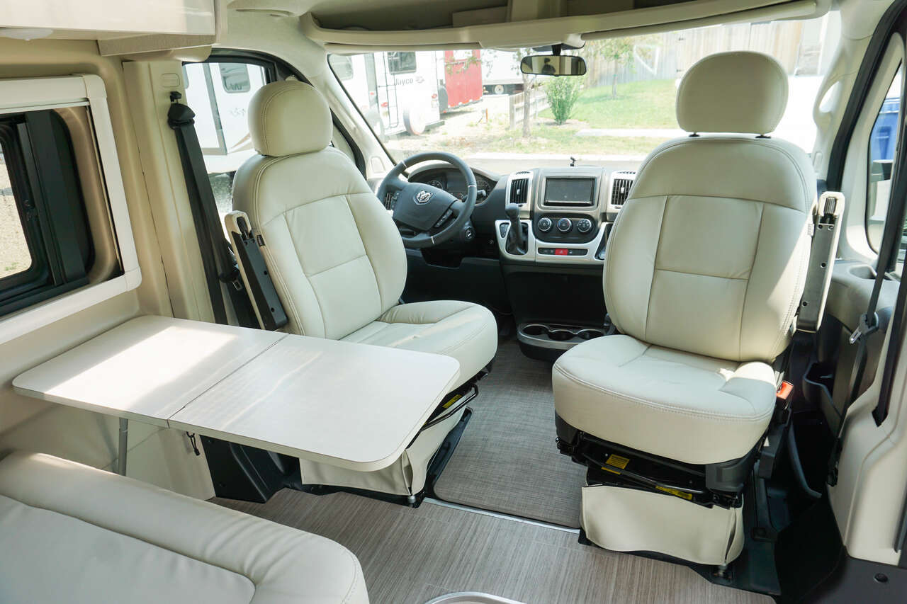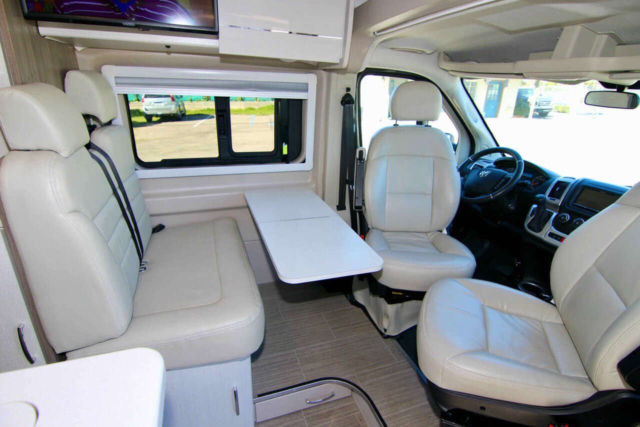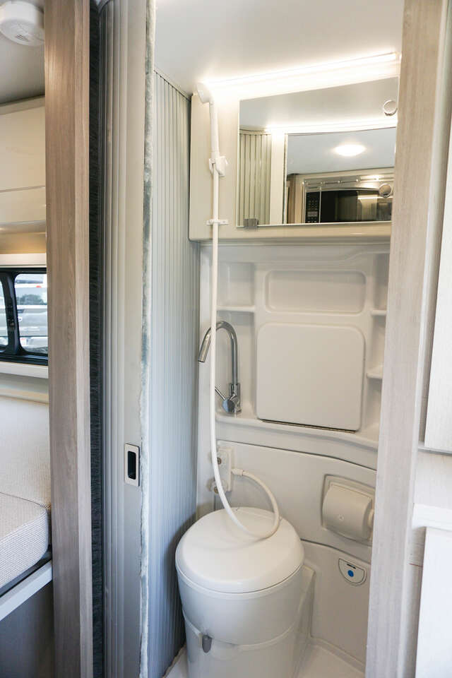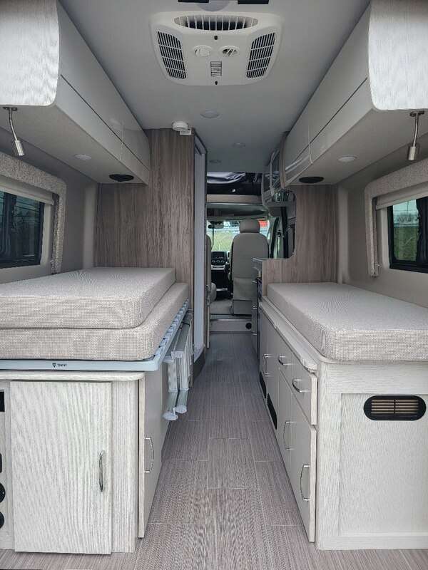 MAISEY VAN HAVEN – THE VAN THAT ROCKS! Take your safe haven on the road with you when you rent a Thor Tellaro camper van near Salt Lake City. Maisey Van Haven is a little bit rock & roll and a little bit cozy retreat. Named for the owners’ beloved Cocker Spaniel Maisey, this van is ready to be your best friend on any adventure. So hop in and hit the road! Maisey Van Haven is easy to drive. And with seating and sleeping space for four people, you can bring the whole family along for the journey. The spacious lower bed can be configured as a king size bed or as two twins. And the slumber party zone in the pop-top features a queen-size bed, where two adults can snooze comfortably under the skylight. Shore power gives you the capability to plug in if you’re at a campground. And thanks to a solar panel, lithium batteries, and an inverter, you also have the freedom to go off grid! You’ll stay cool and comfortable with air conditioning when you’re plugged into shore power or turn on the built-in heater to warm you up if it gets a little chilly. Maisey Van Haven offers a ton of on-board amenities, including: · van heater & water heater system with thermostat · two-burner propane cooktop · convection microwave · stainless steel kitchen sink · built-in refrigerator · LCD television · Apple Carplay/Android Auto. Stops to top off the tanks will be few and far between when you rent a Thor Tellaro 20 AT camper van. Maisey Van Haven boasts a 27-gallon fresh water tank with both hot and cold temperature settings. And speaking of hot water, you’ll also have the luxury of a full bathroom on board complete with a shower and a cassette toilet. All these perks make Maisey Van Haven a comfy home away from home. Let Maisey Van Haven be your sanctuary while you get out and explore the great outdoors. LIMITED ONE-WAY OPTION This van can accommodate a one-way rental if your trip ends on a Friday night or Saturday morning. 125 miles per day are included with your rental. This van charges 50 cents per mile beyond this limit. LOCATION This van is located in Kaysville, Utah about 25 miles north of Salt Lake City International Airport (SLC). MILEAGE 125 miles per day are included with your rental. This van charges 50 cents per mile beyond this limit. AT A GLANCE · Seats: 4 · Sleeps: 4 · Pet Friendly: Yes · One-Way (Limited): trip must end Friday pm. · Delivery and pick-up available (mileage based fee). · Transmission: Automatic · Length: 20 feet · Drive: FWD (4x2) · Fuel: Gas · Minimum Nights: 3 · This van can travel throughout: United States and Canada KEY FEATURES · Air Conditioner · Audio Inputs. Apple Car Play. Android Auto · Awning · Backup Camera · Bike Rack · CD Player · Ceiling Fan · Dining Table · Extra Storage · Solar Panel 20 gallon Gray Water Tank · Heater · Inside Shower · Inverter · Kitchen Sink · Microwave · Outside Shower · AM/FM/Satellite Radio · Refrigerator · 2 Burner Stove · Toilet w/ 4 gallon tank · TV/DVD · 27 gallon Water Tank. Tow hitch (3500 lbs).