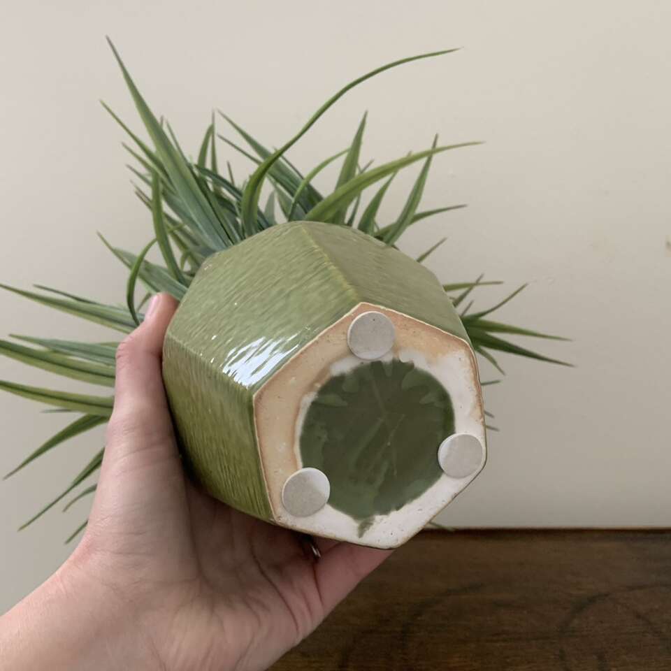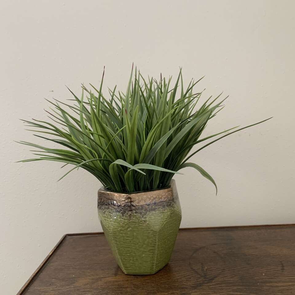 Faux Fake Green Spike Plant in Ceramic Pot