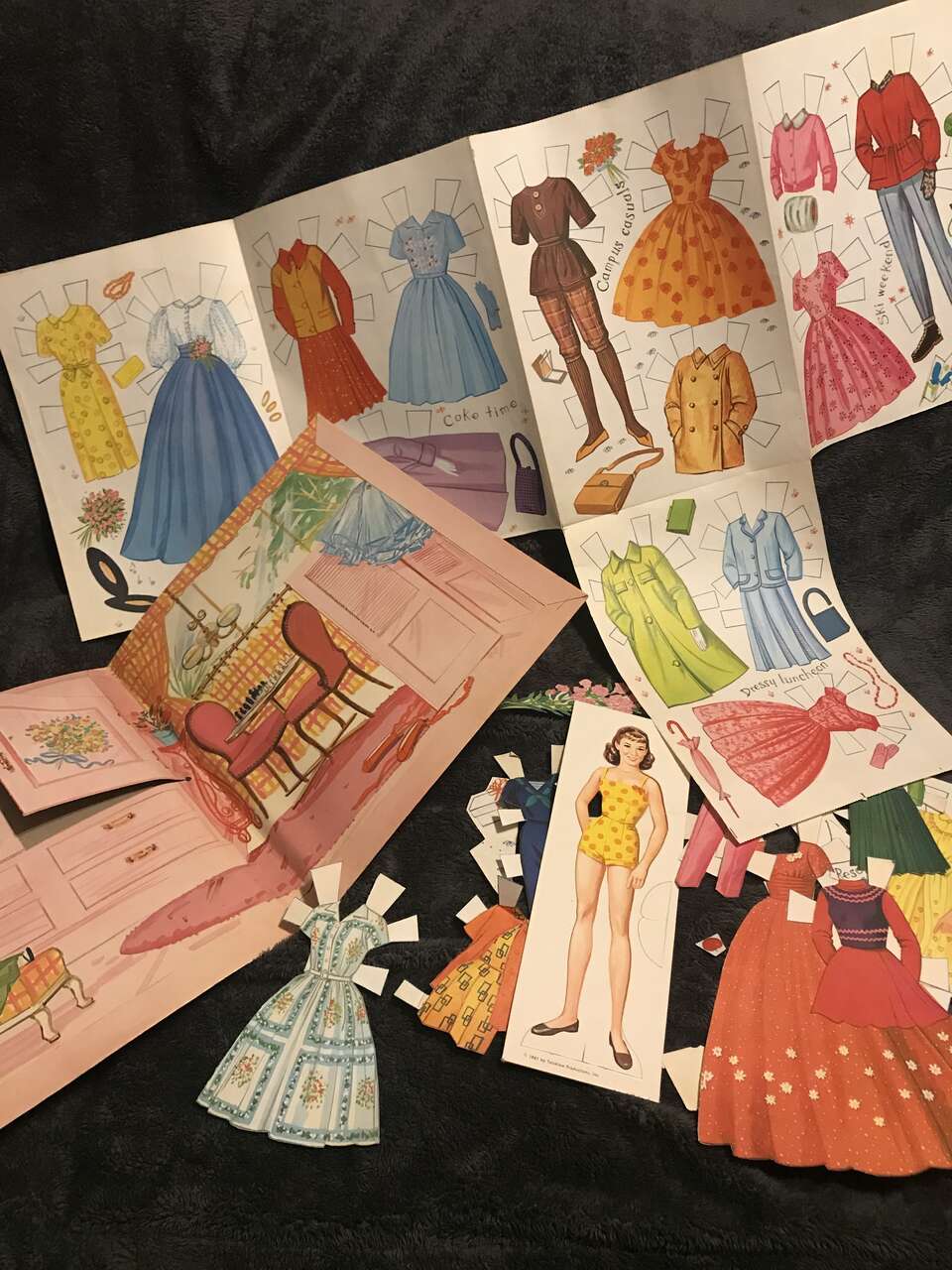 1961 Janet Lennon paper Stand-Up Doll w/ costumes & accessories Original no reproduction