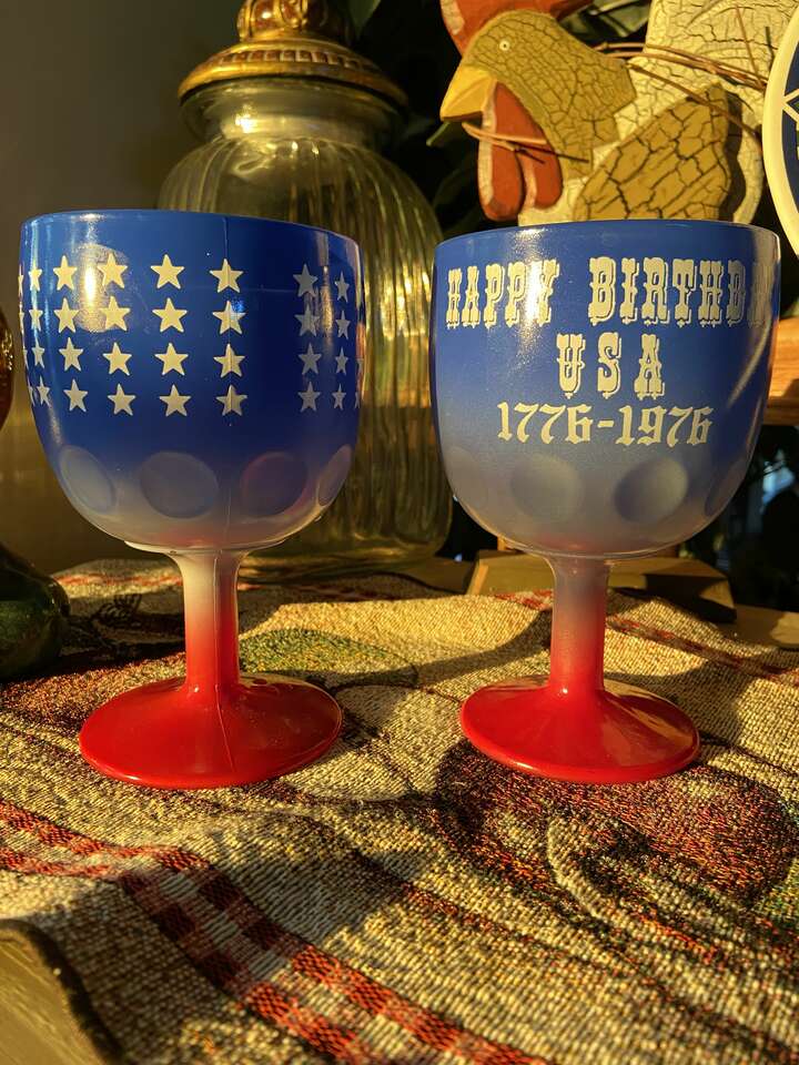 VenmoWith the Semiquincentennial, 250 yr. Independence Anniversary, just around the corner, Enjoy this pair of Special Edition Bicentennisl (1976) Bartlett Collins Goblets commerating the USA Bi-Centennial.