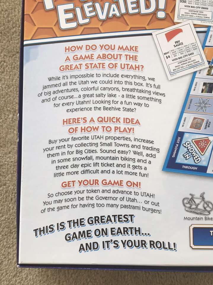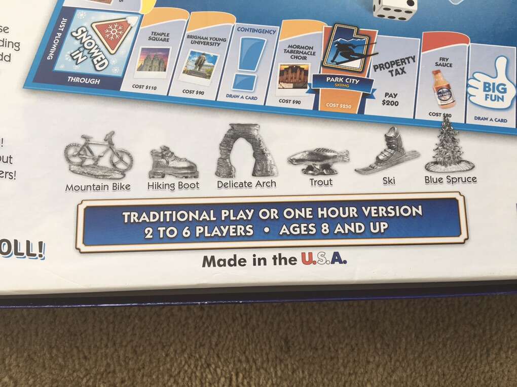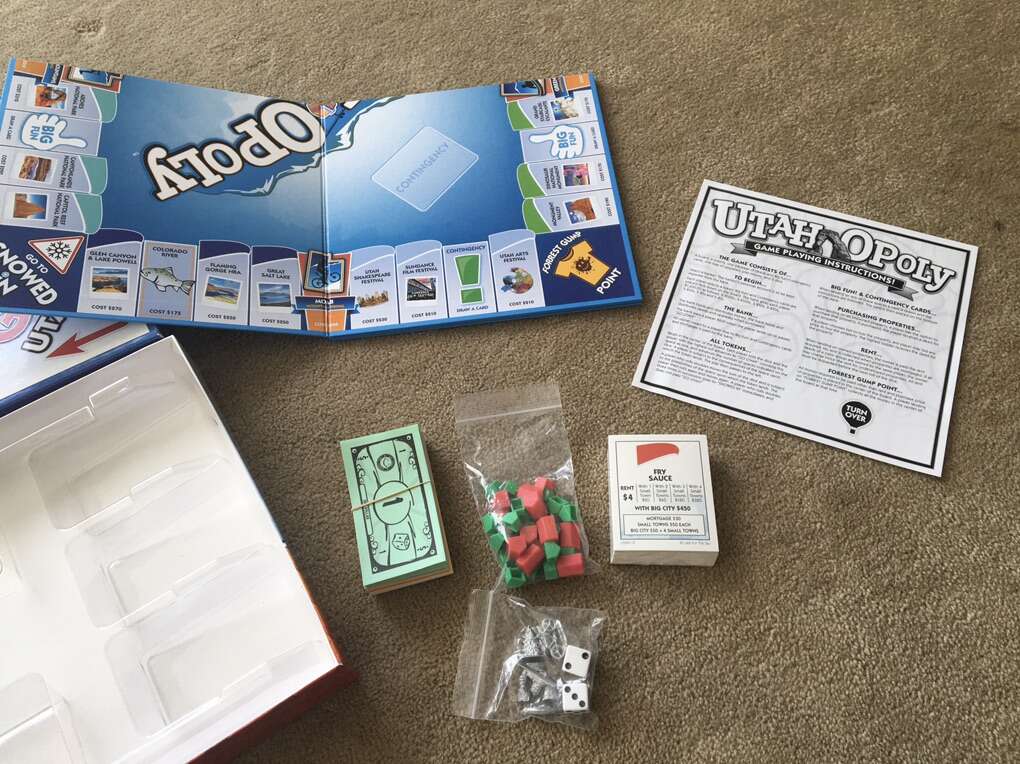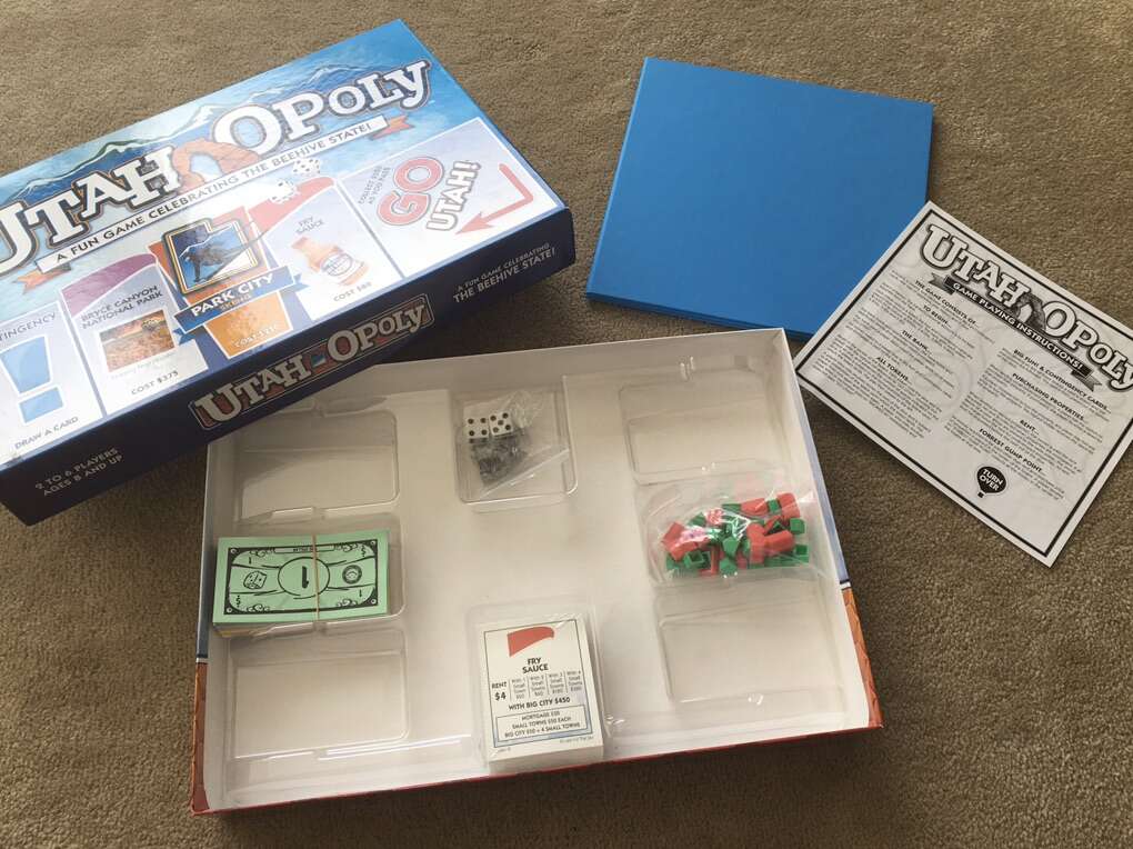 NEW (open box, sealed components) Utah-opoly Board Game: A Fun Game Celebrating the Beehive State! A Monopoly-style game by Late for the Sky. Includes all items shown in photos. 2-6 players, ages 8+. New, unused condition, complete. Text only. Cash or Venmo.