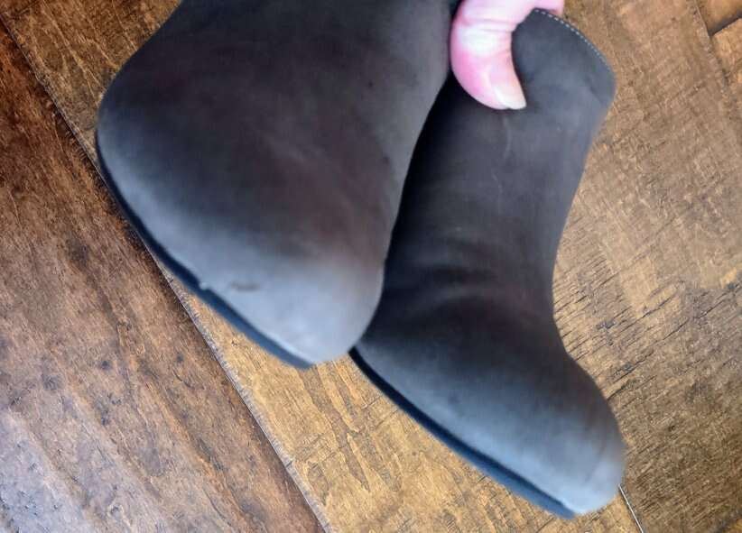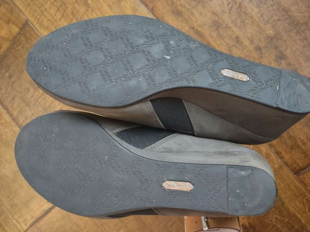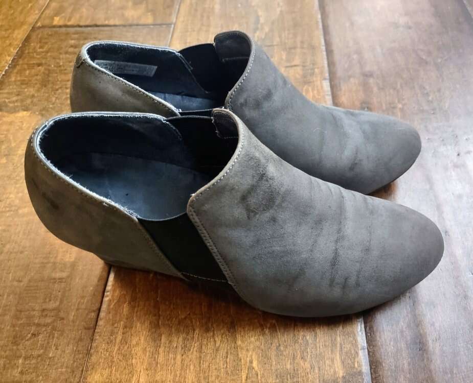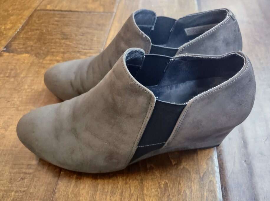 Vionic By Orthaheel Elevated Stanton Women's Slate Grey Wedge Bootie, Size 8.5 - but runs small. I bought them when I wore a size 8 and had to size up. I'm selling because my feet grew a size during pregnancy and they no longer fit me.