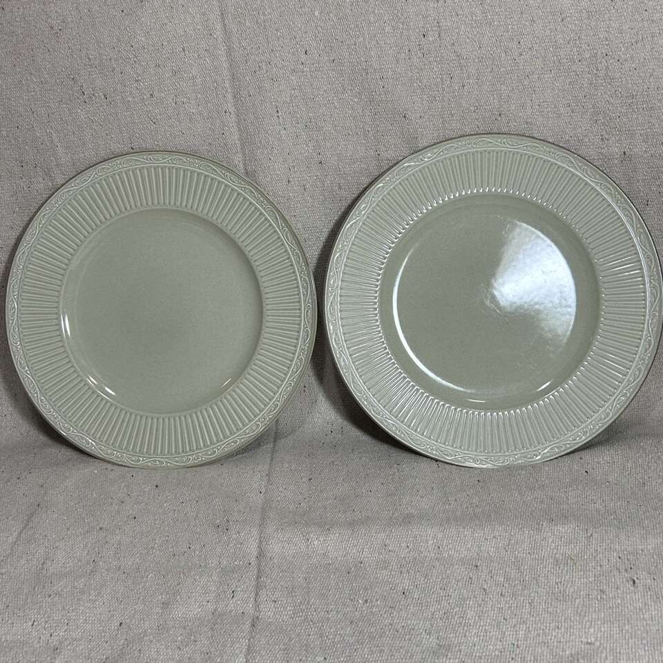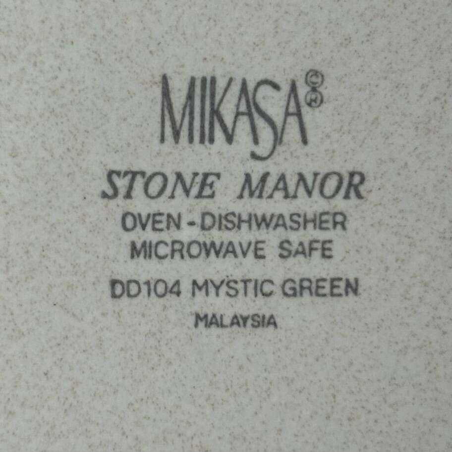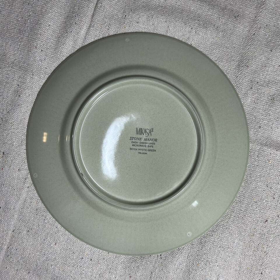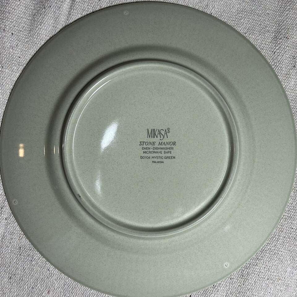 Two Gently used Mikasa Dinner Plates: Stone Manor Mystic Green. Very lightly used- one plate has no utensil marks at all, and the other has very few. No chips or cracks or defects that haven’t already been mentioned. Photographs are of the exact plate you are buying. Smoke free. Delivery available to a convenient location when in your area for $5.