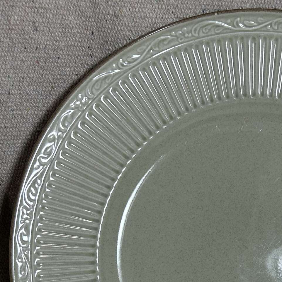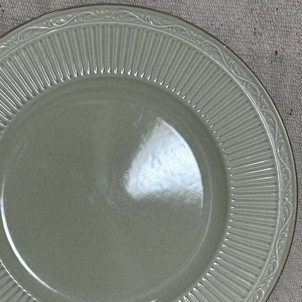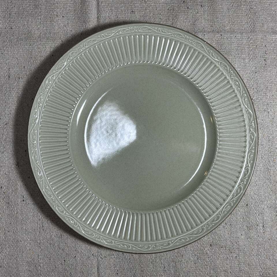 Two Gently used Mikasa Dinner Plates: Stone Manor Mystic Green. Very lightly used- one plate has no utensil marks at all, and the other has very few. No chips or cracks or defects that haven’t already been mentioned. Photographs are of the exact plate you are buying. Smoke free. Delivery available to a convenient location when in your area for $5.