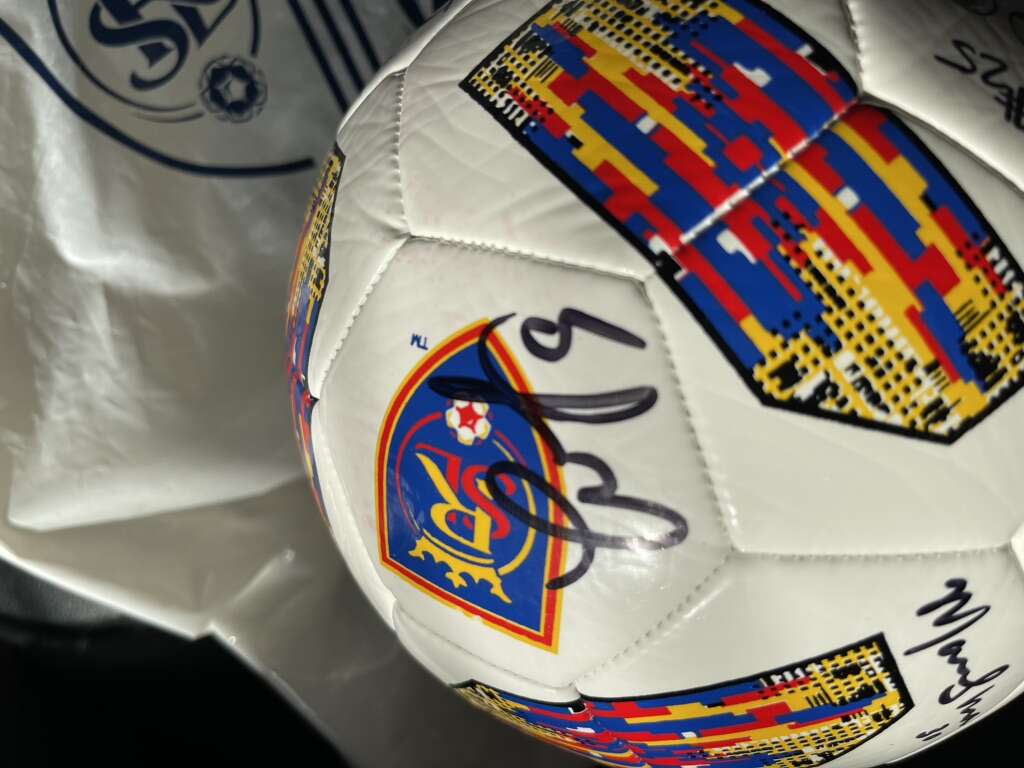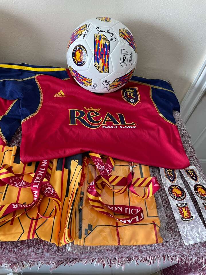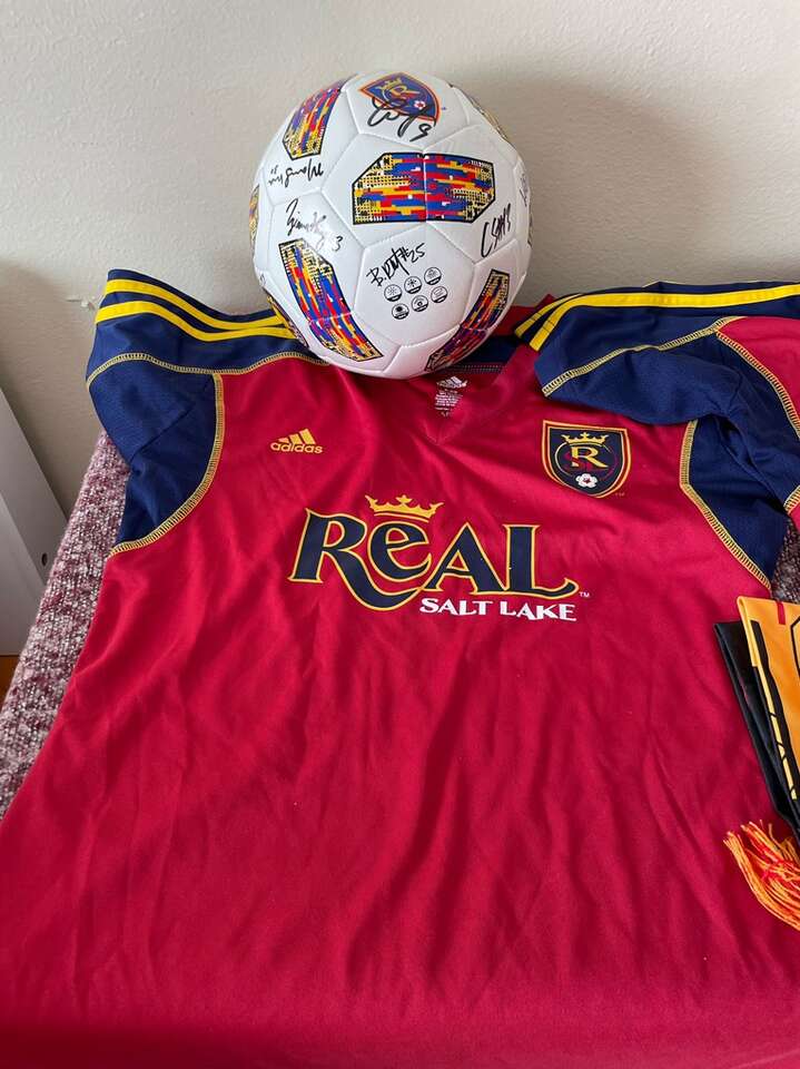 Two Sets of 2018 Utah Royals FC Real Salt Lake Official Size 4 Soccer Ball Team Signed Soccer Football (not sure of their names) one has about 14 and the other about 18 signatures. Each ball is paired with a RSL V-neck t-shirt size S-CH (child), yellow scarf and a lanyard. Cas or Venmo only, see pictures for details.....