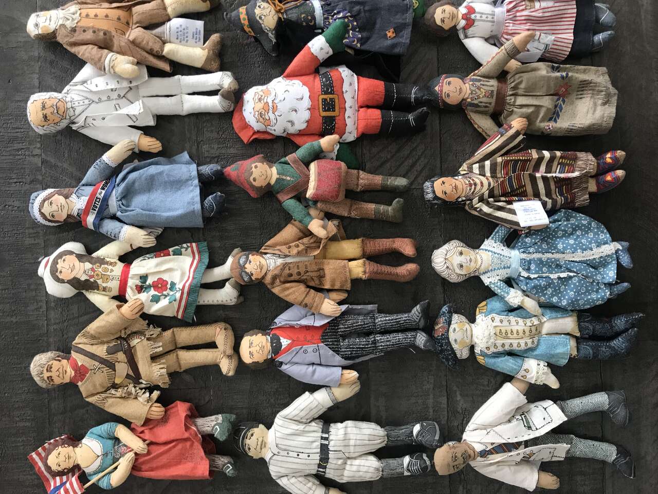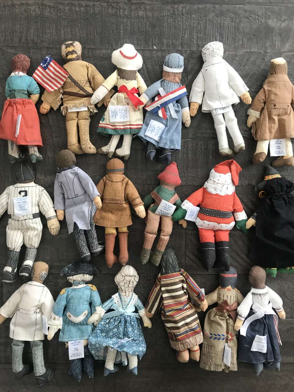 Winnie the Witch, Santa, Drummer Boy; Molly Pitcher, Clara Barton, Davy Crockett, P.T. Barnum, George Washington Carver, Mark Twain, Susan B. Anthony, Indian Girl, Chief Joseph, Amelia Earhart, Annie Oakley, Martha & George Washington, Benjamin Franklin, and Babe Ruth.