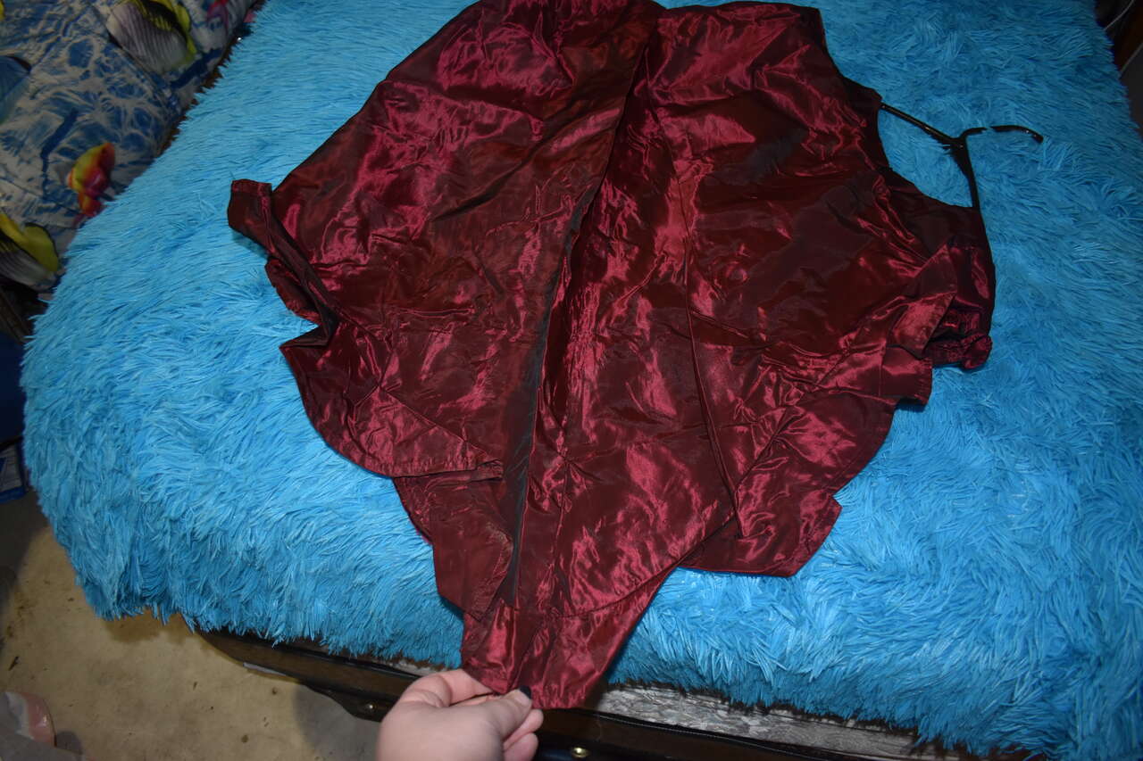 I have a red dress for sale it dose not have a tag so I don't know what size it is. it has no rips tears or stains on the dress but it may have a few wrinkles from being in storeage it's in good condition if your intrested in the dress please contact me I prefer to be text but you can call to I'm asking for 100 dollars must sale ASAP I ONLY TAKE CASH thank you