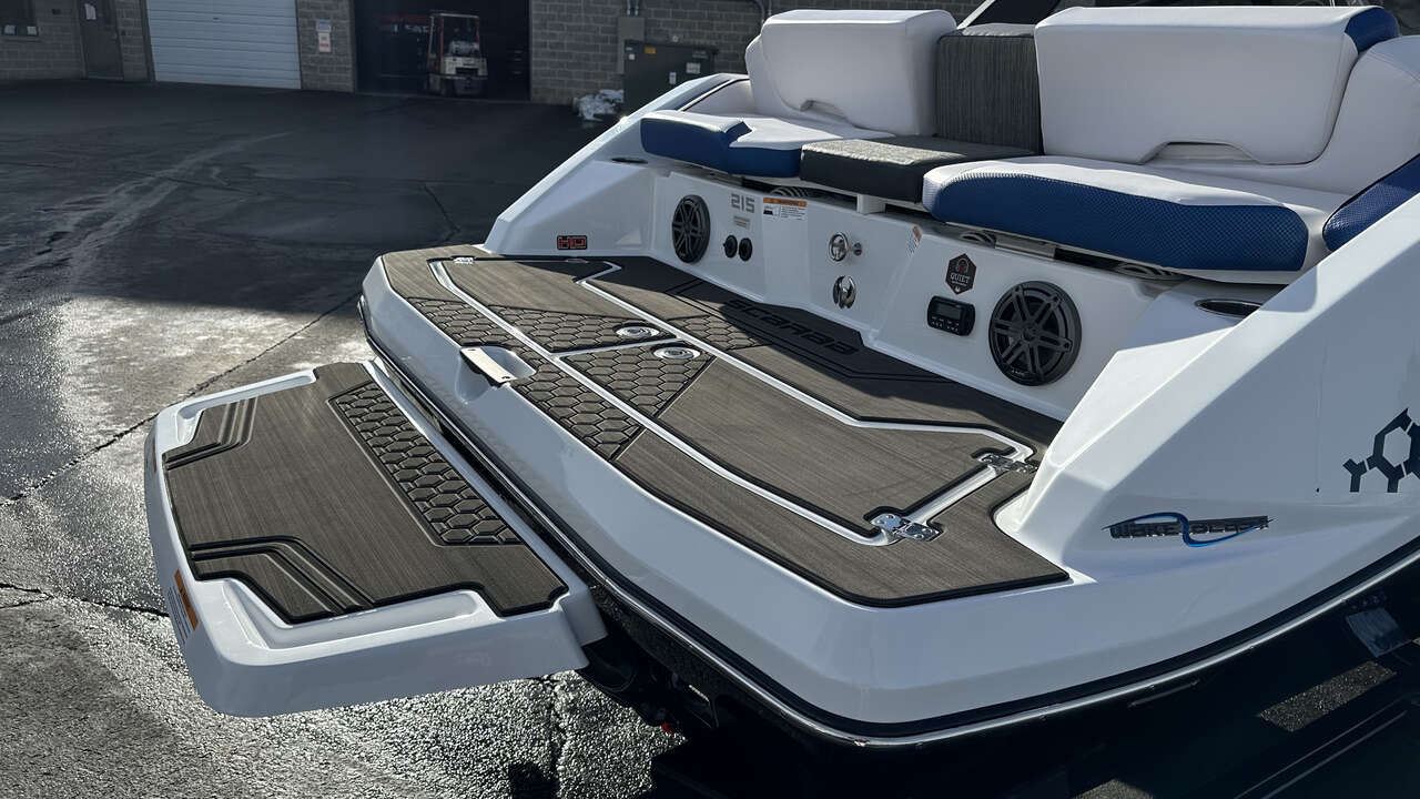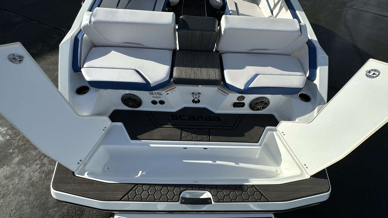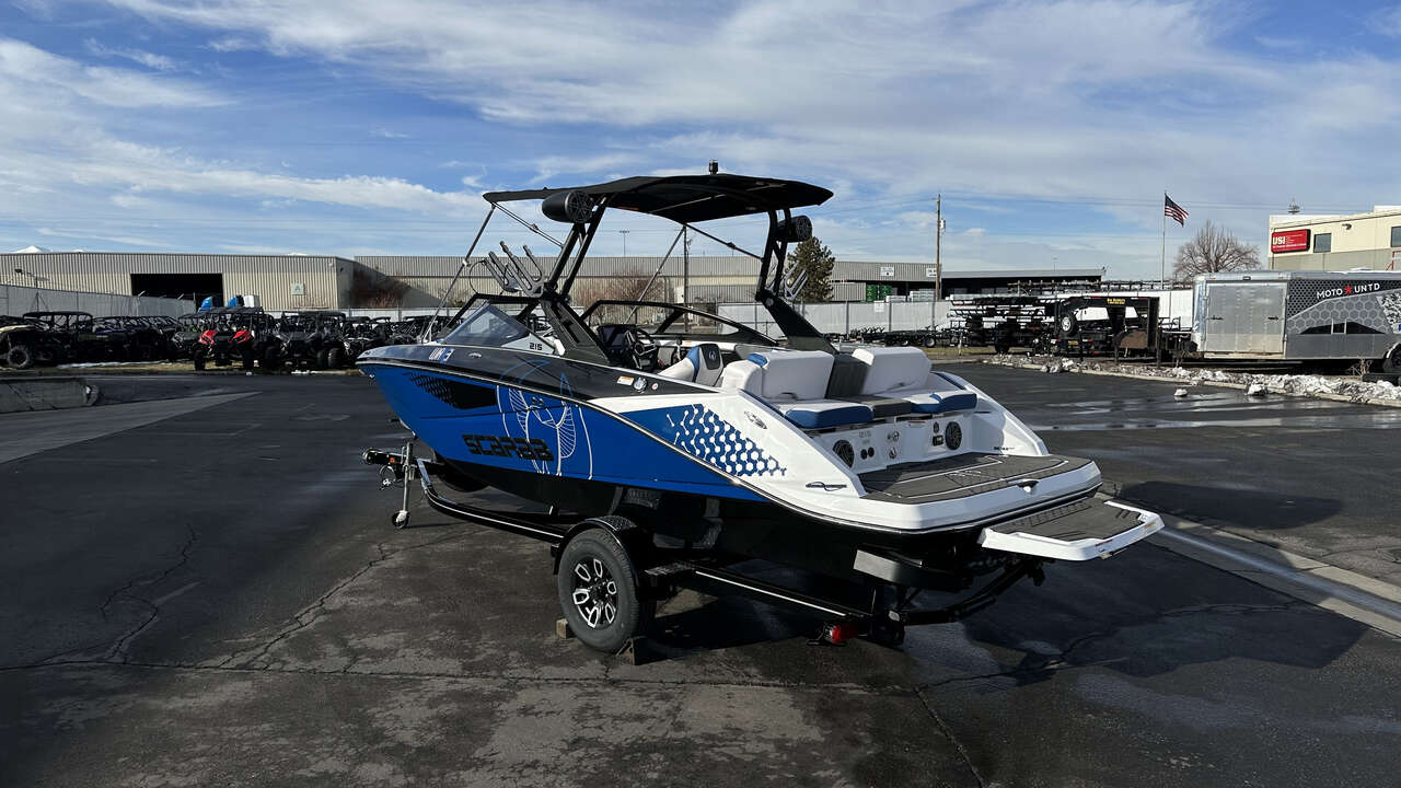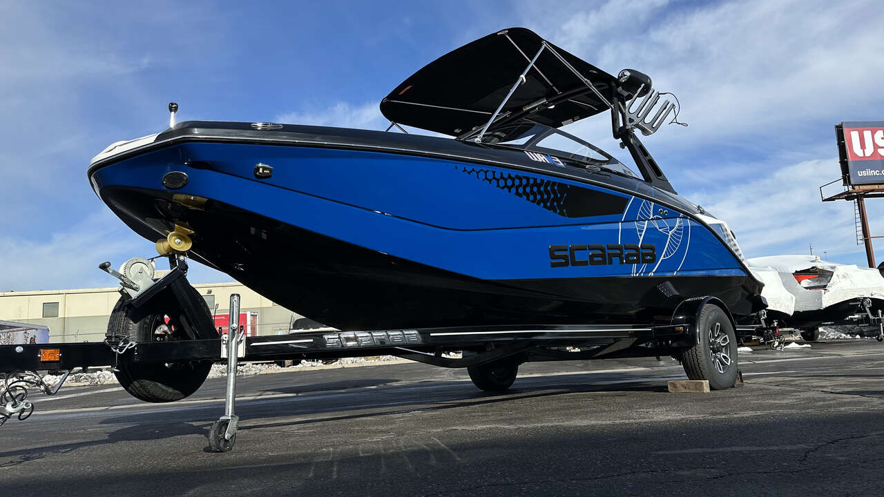 Here at Marine United SLC we have this beautiful Scarab 215 ID, this is built to be the fastest, most-powerful boat that Scarab offers. With a top speed over 60MPH and a surf system, this boat is super versatile!
