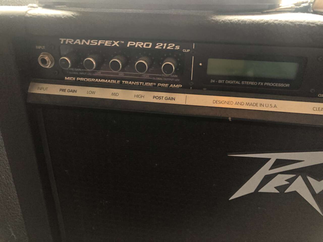 This is a Peavey's Transfex Pro 212s combo amp. It is a multi-FX amp. Has an analog preamp section with digital FX. Has Peavey's patented "transtube" tube simulator. It is in great shape, especially for its age. It has four different channels,... Clean, crunch, lead, and ultra, as well as a ton of great FX to choose from that are all fully customizable. It is a whopping 260 Watts stereo, 130 per side at 8 ohms, and gets LOUD!! It has a stereo FX loop, as well as stereo Power Amp in, and Preamp Out jacks. Also has a speaker simulator function for running direct to PA or recording. Has 2 Sheffield speaks, both original. It is midi controlled. It has a 20 character display, 10 presets per bank, can access and display the amps tuner on its LCD display, and has 2 inputs for separate CC controllers(not included).