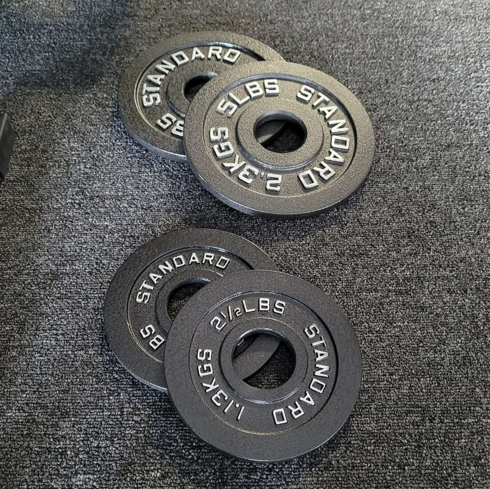 Come down and take a look. You can get one pair of 10, 5 and 2.5 lb plates for as low as $59! That's as much as $40 to $60 less versus what these higher quality commercial grade plates go for online!