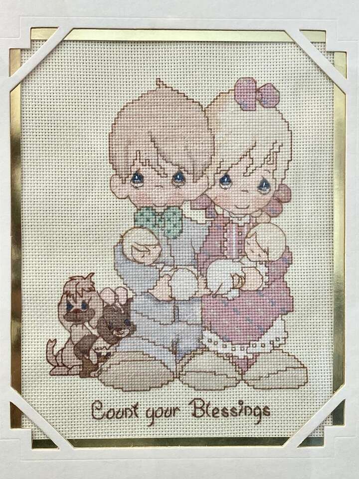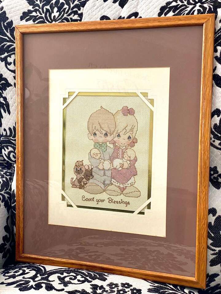 Beautiful precious moments frame with a quote”count your blessings” in great condition wide 1f5”Tall 1f 9”