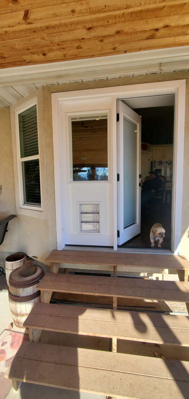 This is a perfect fix for thoes lowes or homedepot patio door dog door inserts. thoes inserts take up a bunch of room trying to get in and out your patio door not to mention all the heat or cold that you are loosing with the lack of a tight seal . these door conversions range from $700 to $2500 depending on what you need. i have done over 100 of them so i am well experienced on what it takes to make sure you get the best function and professional install for what you and your furry friend would need. (also do these in french doors) for more info call or text Tyson @(801 458 5932)