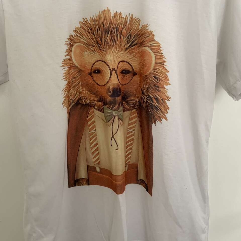 Men’s Hedgehog in Suit White T Shirt Size Medium