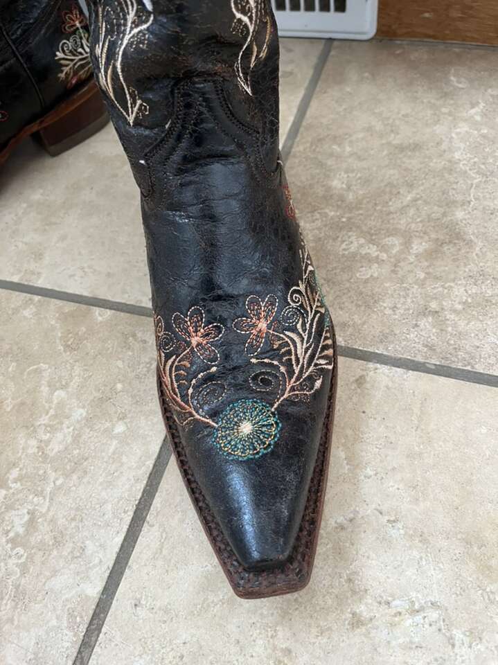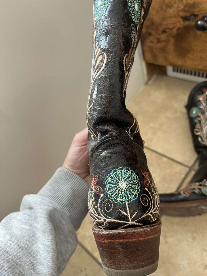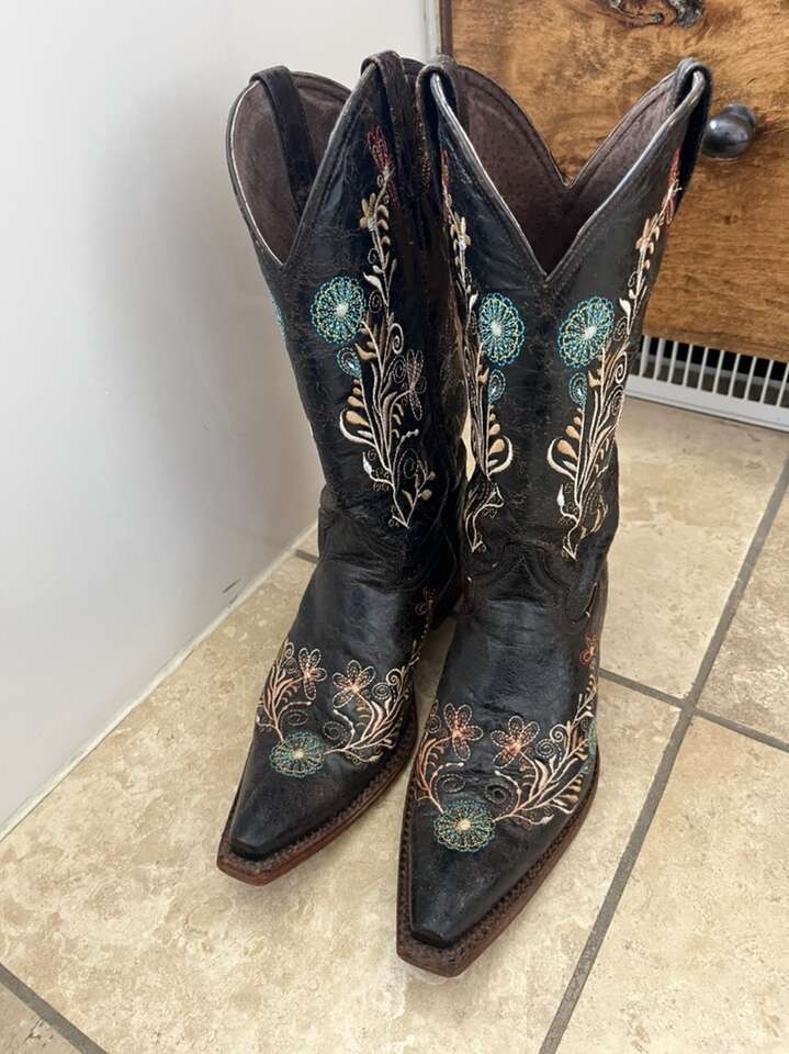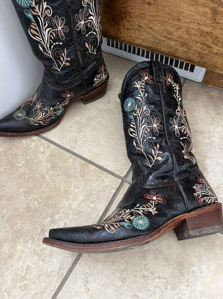 Women’s pecos bill embroidered flowers Cowboy Boots size 9 run small