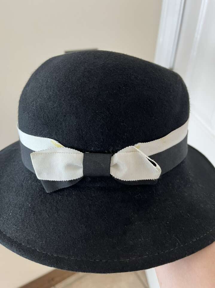 Super cute vintage wool hat women’s Lancaster brand black/white 7 inch opening