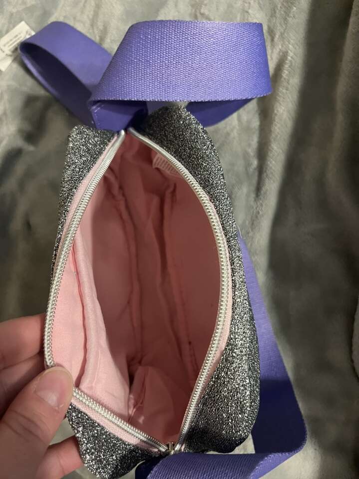 Brand new with tag Girls purse Metallic silver Pink inside Purple thick s shoulder strap Rainbow pattern on front Zipper closure Super fun and cute. Located American Fork/highland Cash or Venmo $5