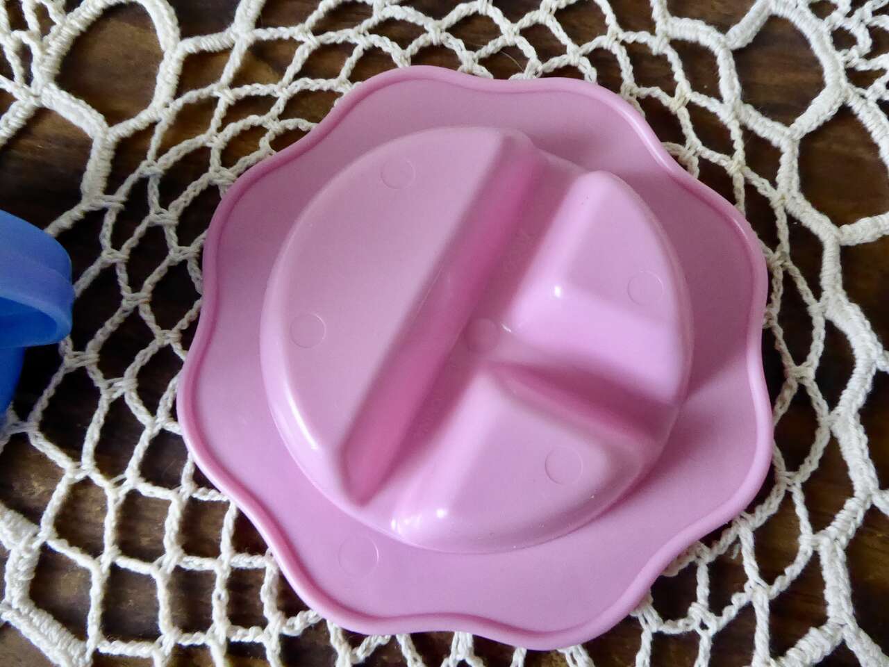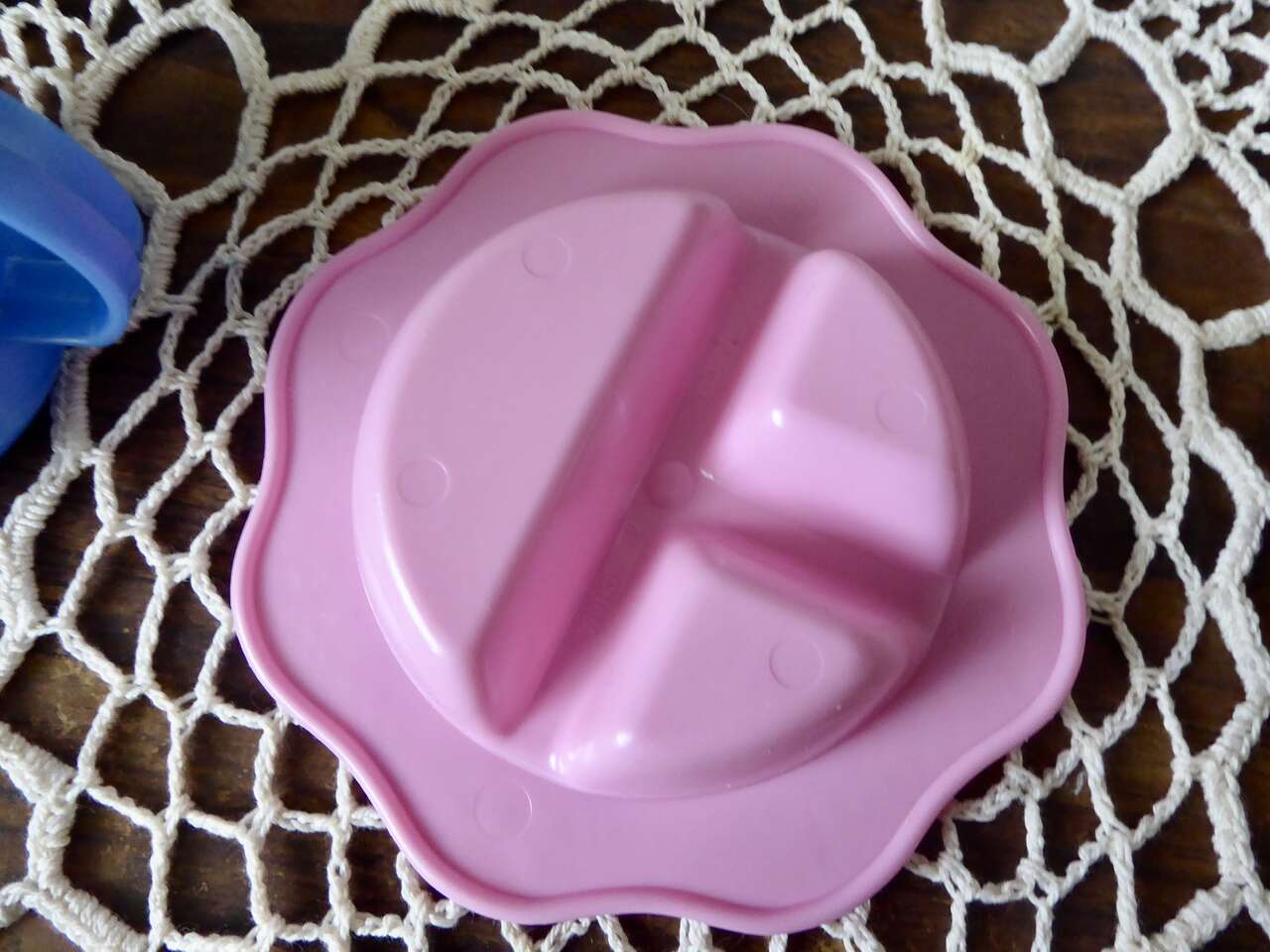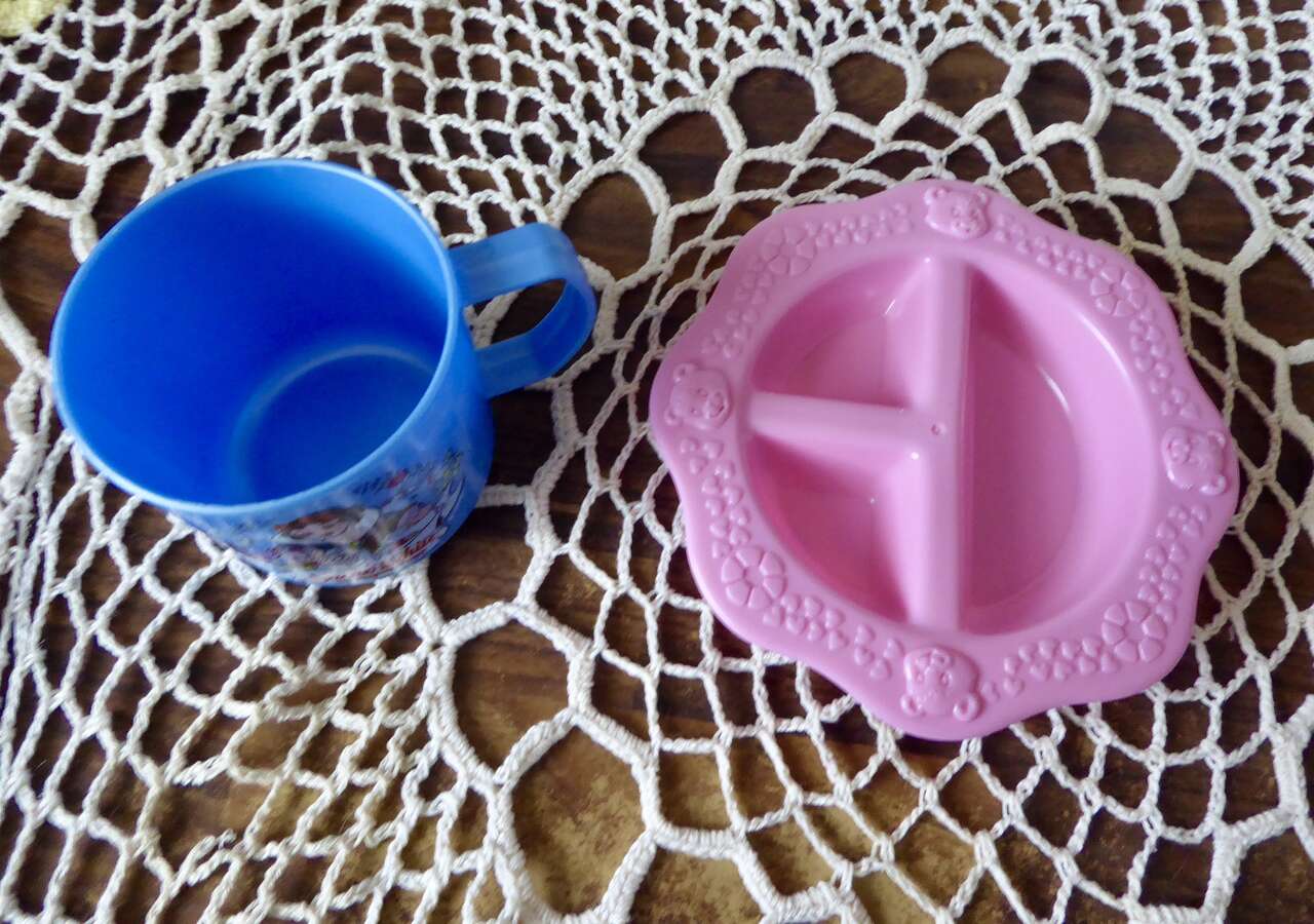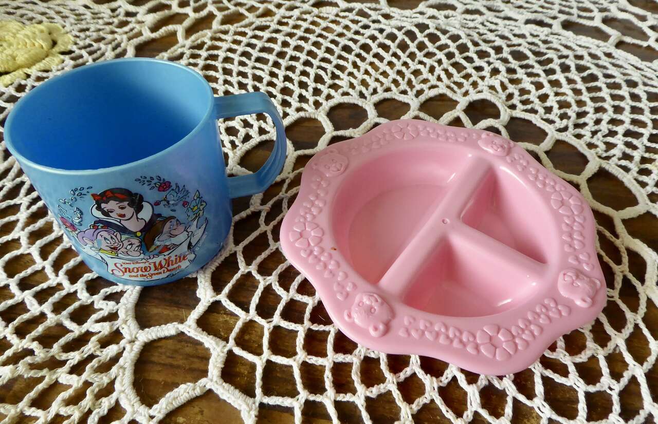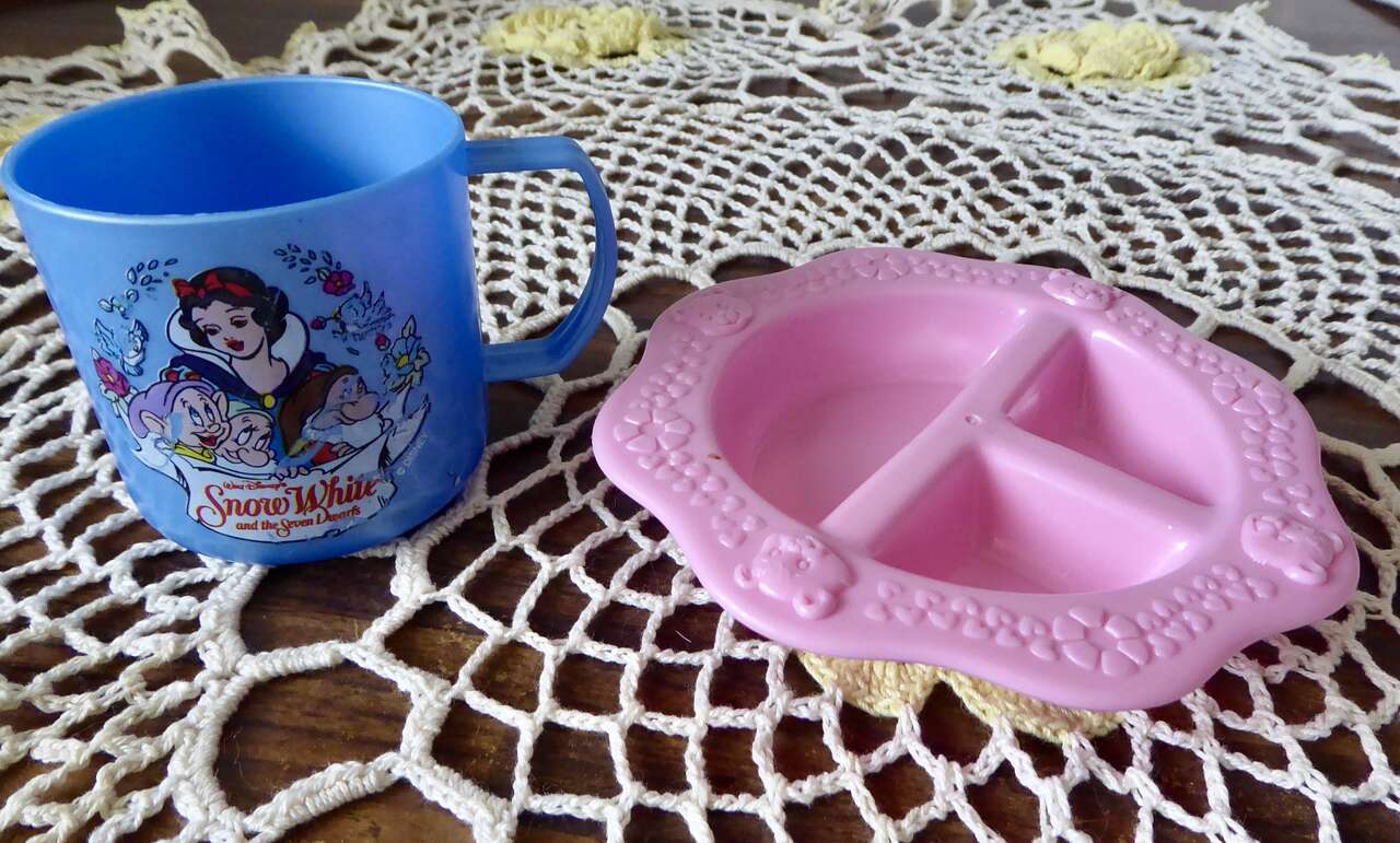 Disney Blue Snow White Decor Cup With A Sweet Pink Baby Doll Dish With A Bear Design With 3 Sections in very gently played with condition.