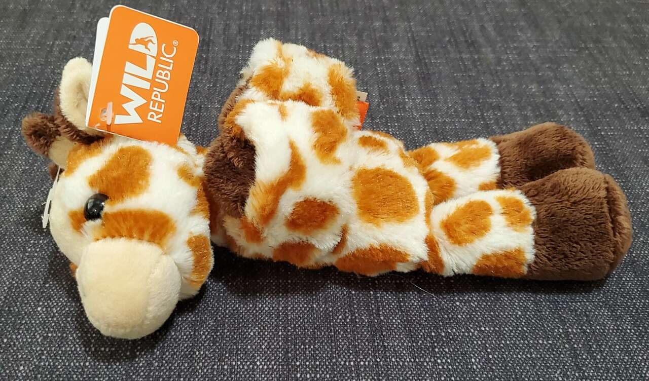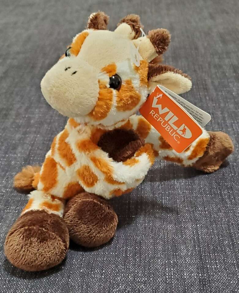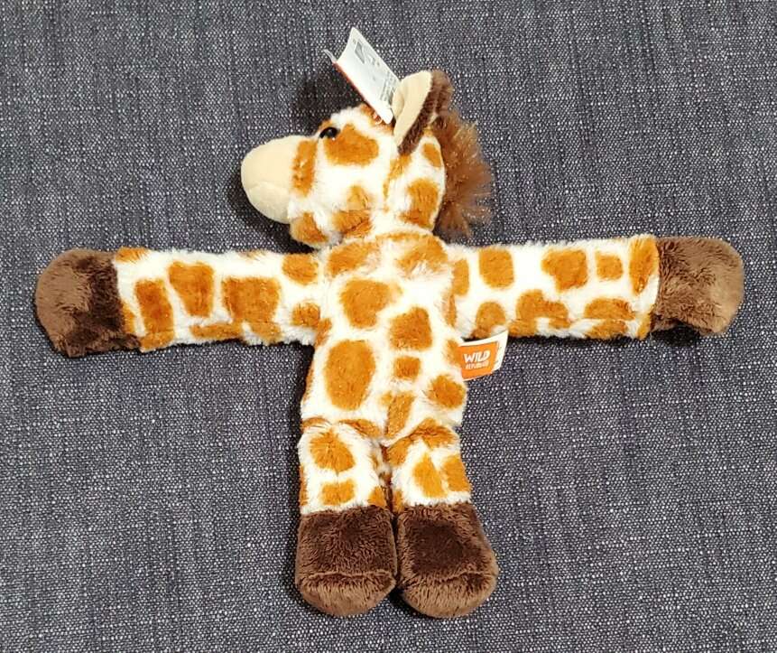 The arms are made of the slap bracelets so they fold in tightly allowing the giraffe to hold onto things.