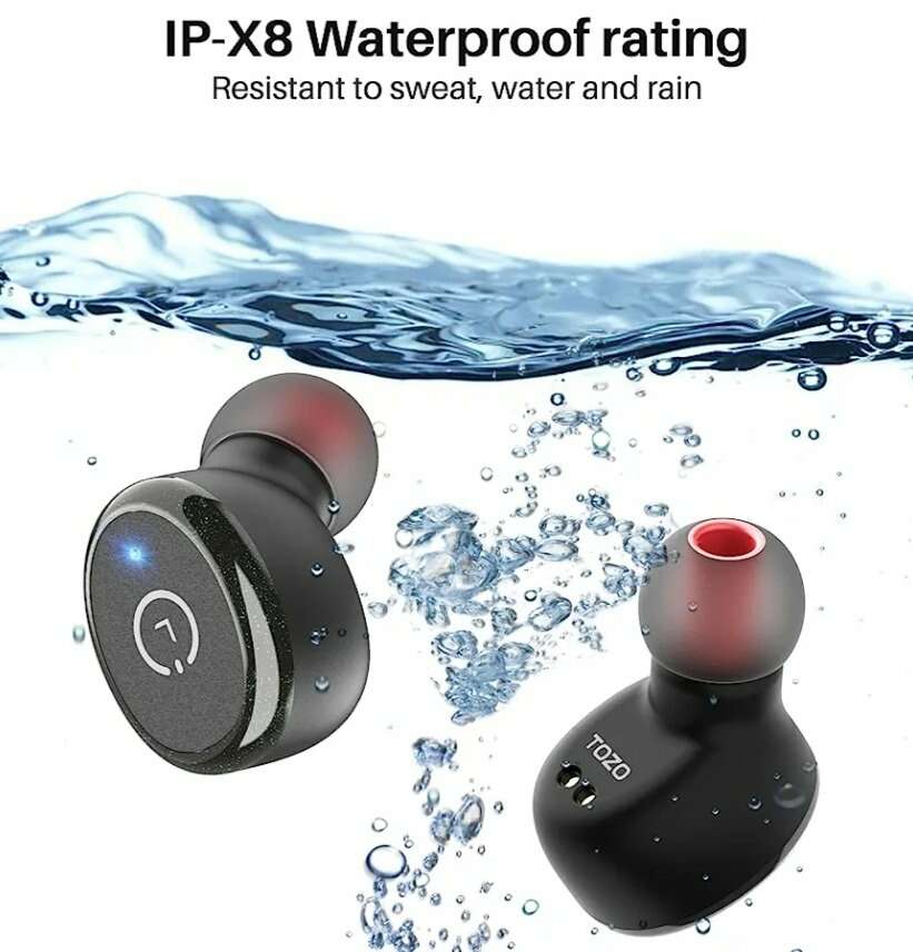 IPX8 WATERPROOF PROTECTION Nano-coating efficiently protects the earbuds from the damage of the splash by sweat and raindrops.