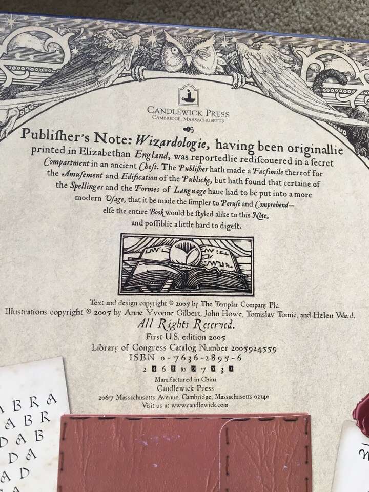 Wizardology: The Book of the Secrets of Merlin, by Candlewick Press, 2005. Excellent condition, no marks or damage, all inserts, letters, and maps complete. Text only. Cash or Venmo.
