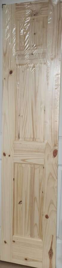 1/6X6/8X1-3/8 Knotty Pine 3 panel door. Door measures 18"X80"X1-3/8" it is new still in plastic.