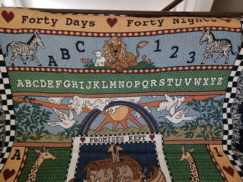 Large Woven Tapestry like Blanket 46 x 65 Nice and soft Clean, No Stains, No Holes From a smoke and pet free home