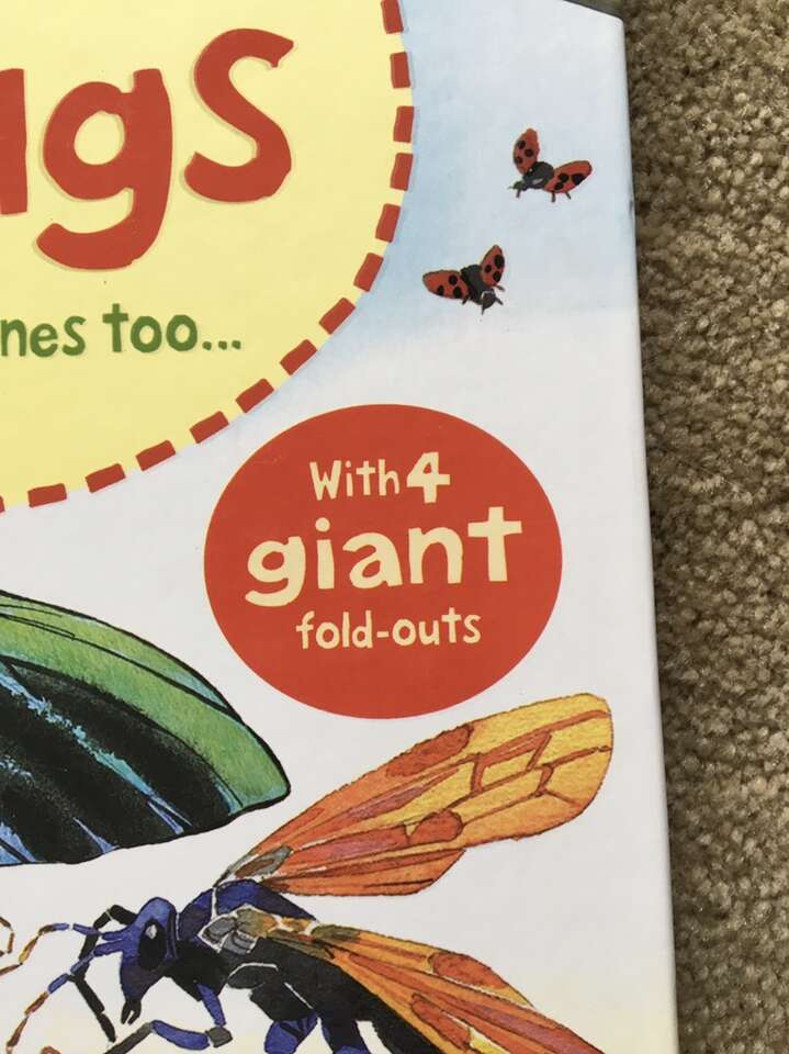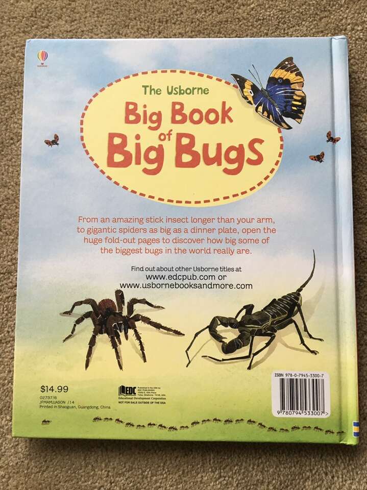 The Usborne Big Book of Big Bugs, and a few little ones too. With 4 giant fold-outs. Full of bright illustrations and educational information. Hardback in excellent condition. Text only. Cash or Venmo. Discount on multiple items.