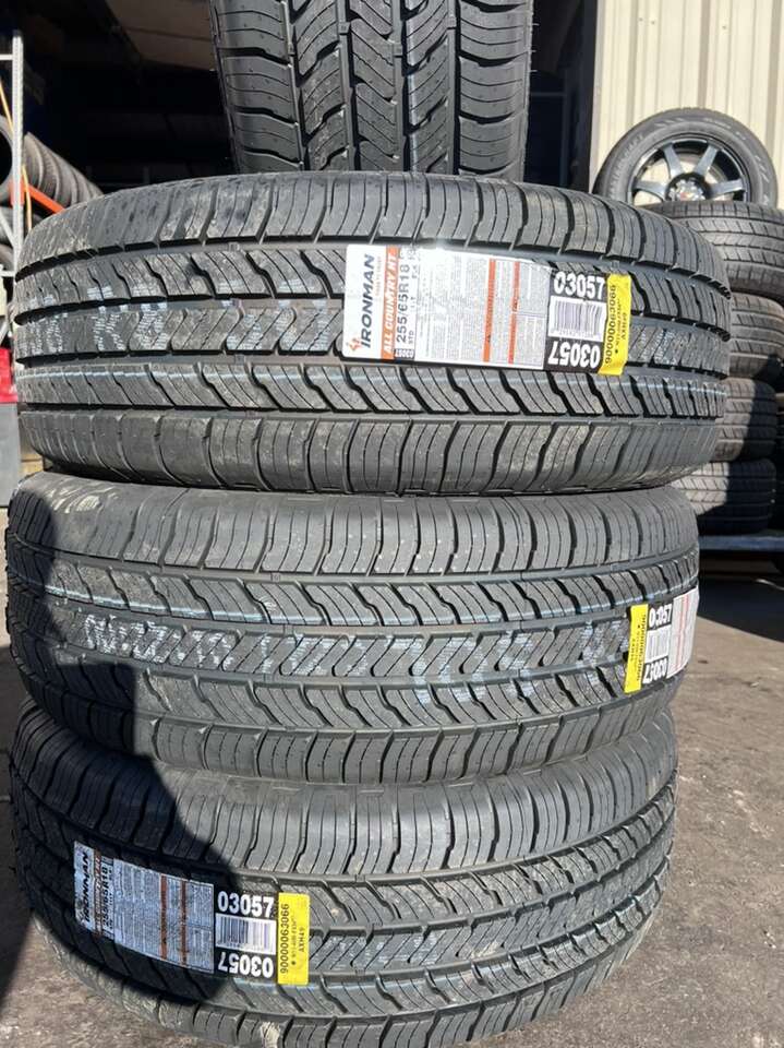 BRAND NEW SET OF IRONMAN ALL COUNTRY HT 255/65R18 m+s. $590 PLUS TAX GREAT TIRES FOR ANY WEATHER CONDITIONS WE ALSO OFFER 90 DAY NO INTEREST FINANCING WITH ÁCIMA ANY QUESTIONS CALL THE OFFICE AT 8016620227 OR TEXT 8017932917 OR COME VISIT US AT OLIVER TIRES 3010 W 500S SALT LAKW CITY 84104 #11 OPEN MON-FRI 9AM-6PM WE CARRY LOTS OF USED AND NEW TIRES AND WHEELS