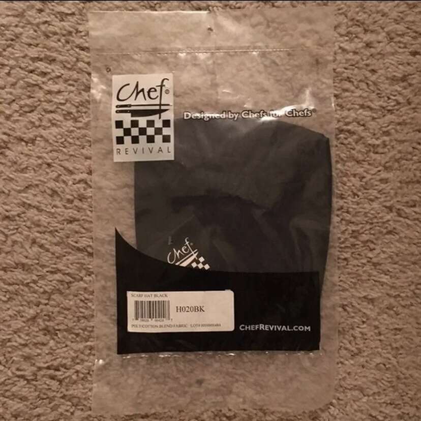 Chef Revival Chef's Scarf Hat One size fits all Lightweight poly-cotton blend Comfortable, breathable design Adjustable ties in the back Professional black color Unisex New with tag, in its original package. Designed by Chefs for Chefs.