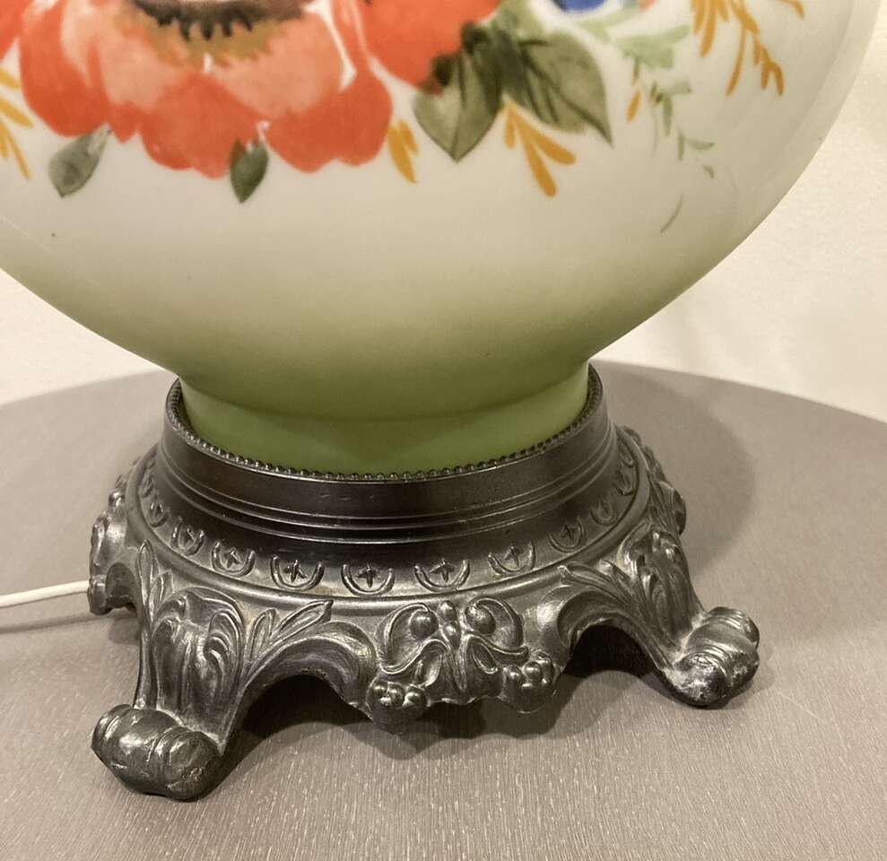 VenmoGorgeous, tall hurricane lamp! This is a beautiful example of the handpainted, Gone With the Wind 3-way lamp. You can light the bottom globe, top or both. It gives off a beautiful light. It stands about 21” tall. Everything is complete and in perfect working condition. There is one quarter inch nick on the top shade. It is not visibly apparent. It’s difficult to photograph how stunning this is!