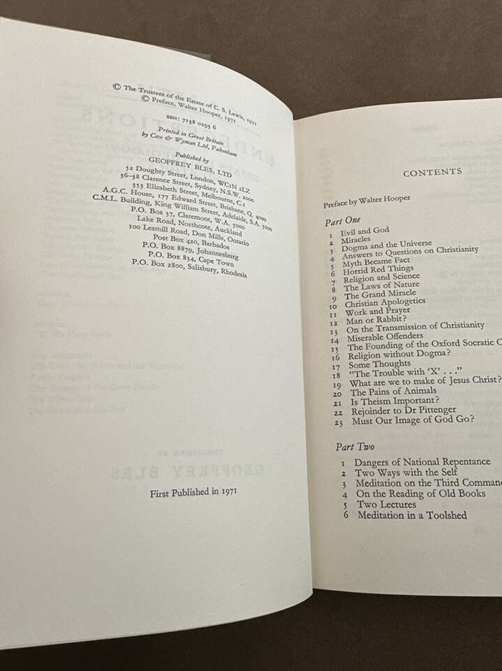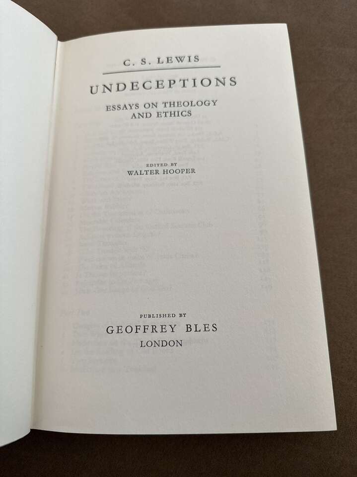 Undeceptions: Essays on theology and ethics by CS Lewis. Hardcover with dust jacket. Mylar dust jacket protector. No markings at all