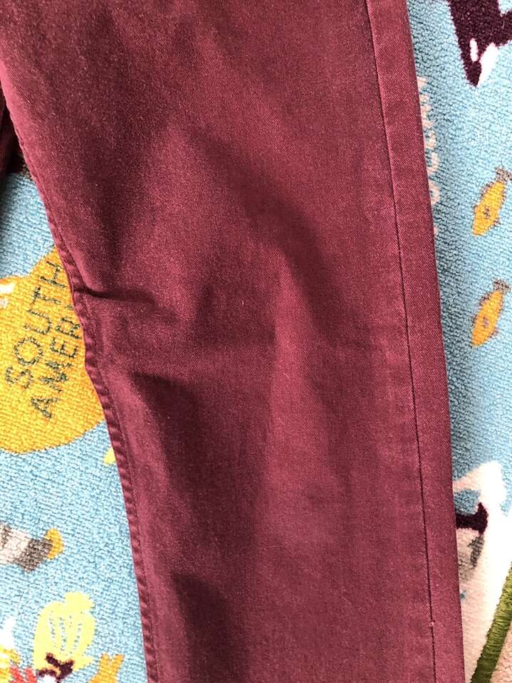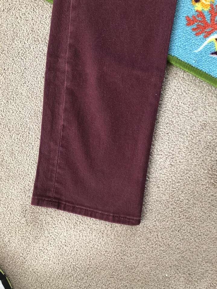 Here are some Levi’s 513s in maroon-red in excellent used condition-EUC [barely worn frankly]. White Levis tag = BONUS!!