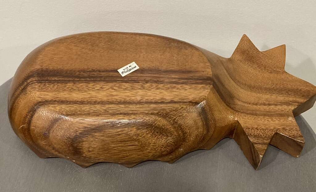 VenmoHand carved wooden bowl from the 70s. Made in the Philippines. Measures 15.5” x 7.5” x 3”. Nice vintage condition. Pick up in Murray.