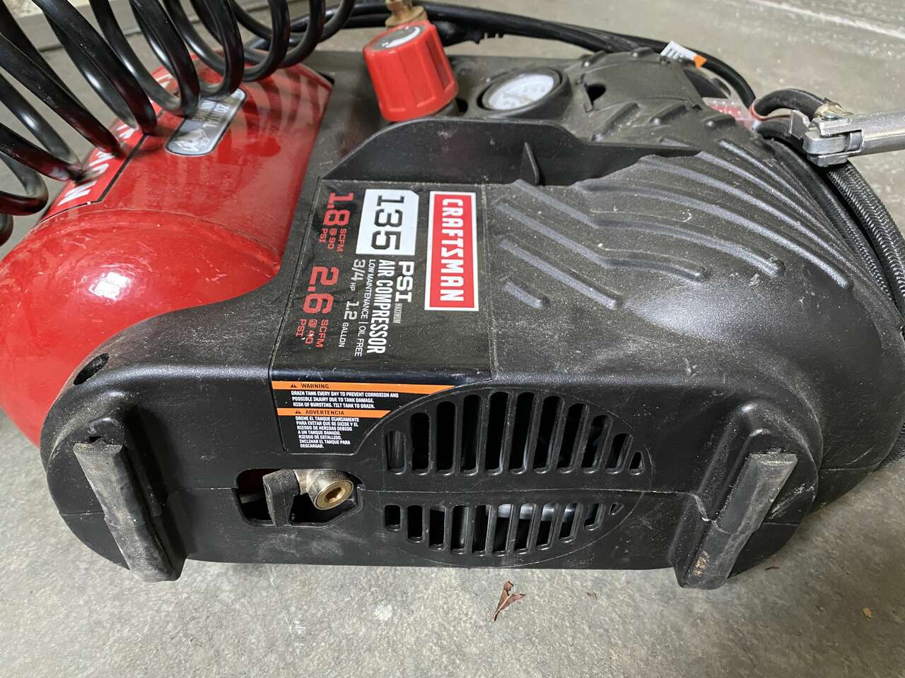 Compact size and light weight Craftsman 1.2 Gallon air compressor.