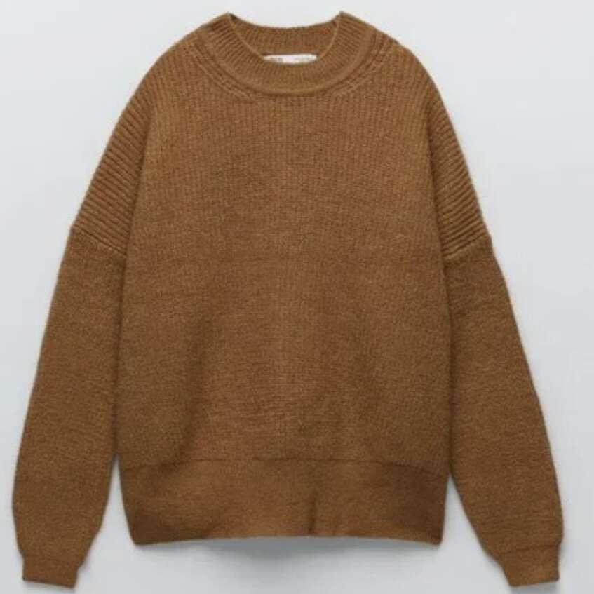 PRICE REDUCED TO $20. Like new! Zara Purl knit long sleeve round neck sweater. Side slits at hem. Size Medium