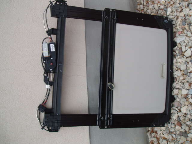 HHR power sunroof assembly. Fits all years. In good condition. The air deflector bracket is cracked on the driver side (like most of them) and should be repaired before installation. The headliner is also available.