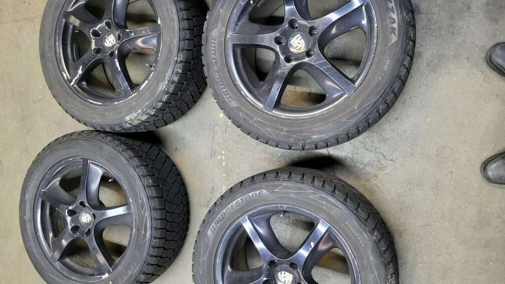 Save time and money and create ease of tire changes from winter tires to all season and back by instead having a dedicated set of wheels for each and not bother with getting an appointment at a tire shop to change tires and balance them each time when it's simply five lug bolts on each wheel to change to your other set. I have wheels separate, wheels with used tires, and even a new set from the Porsche factory that has never been mounted on a vehicle. Quality and price ranges from used with curb rash for economy to nearly new to new. Prices range from $400 to $5700. Sizes available are 18, 19, 20, 21 & 22 inch wheels. Tires range from all-season (new and used), drag radials (new), winter tires & oversized (maximum diameter and width) that work amazingly well on off-road trails in the winter. You paid for performance as a Cayenne owner, so get full value from that by being able to optimize the only part that touches the ground -- the tire tread rubber, by having two dedicated sets of wheels. That's what I enjoy with my three Cayennes, but I can only drive one at a time, so I'm cutting back and selling some of my extra wheels. There are too many to post a catalog of pictures, so text me what you want, and I will text back with pictures or invite you to come see.