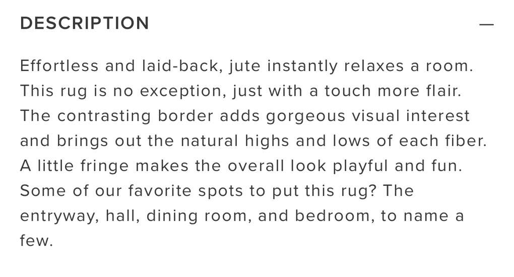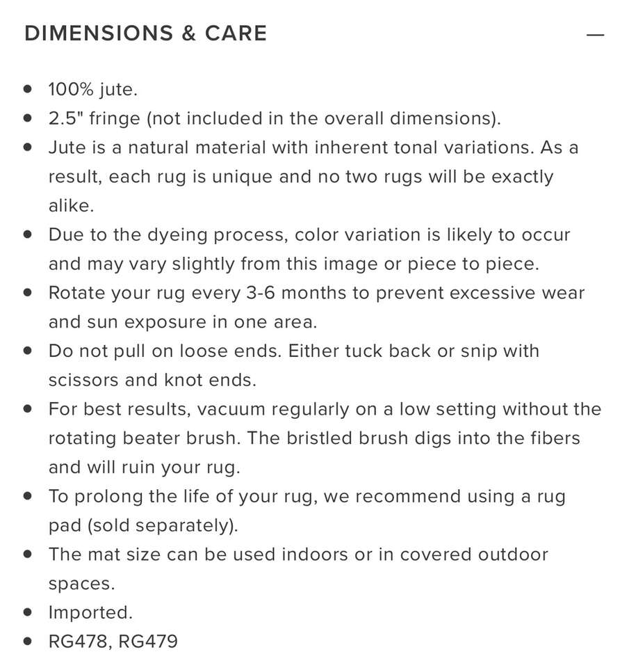 Description- 8’ x 10’ Sayulita area rug in bleached/natural 100% jute. See photos for more product information and specifications.