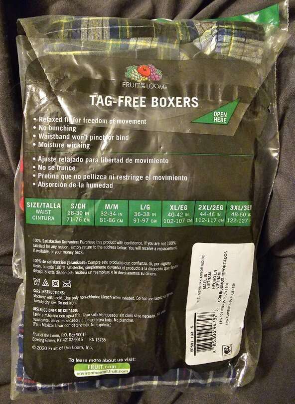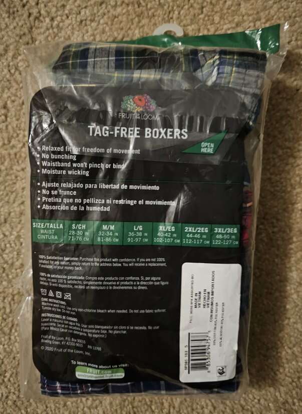 Opened package with one removed. There are 5 brand new never worn boxers in the opened package. Size is small and fits waist size 28-30. Bought for son. He removed one and didn't like them.