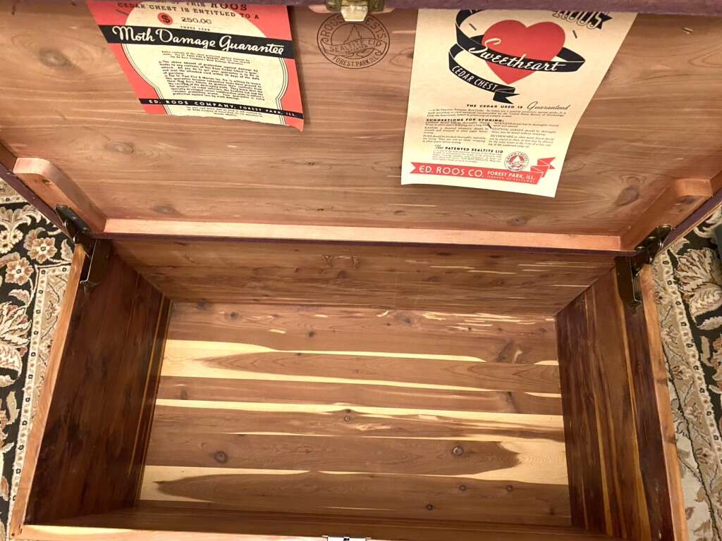Roos vintage cedar wood chest for sale. This is a gorgeous chest in very good condition. Chest is 35 inches long by 18 inches wide by 18 inches tall. See photos. Call or text with questions. Cash or Venmo