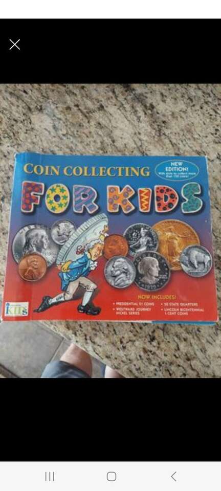 Great set of coins. Inside a book called Coin Collecting For Kids.