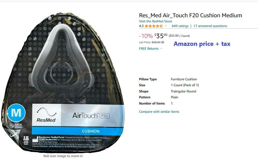 Full Face Mask replacement cushions. Brand new and sealed in their factory packaging. Size: Medium. REF: 63029 Price: 1-$30.00 or 2-$50.00 Please click on "More From This Seller" to see my other CPAP ads.