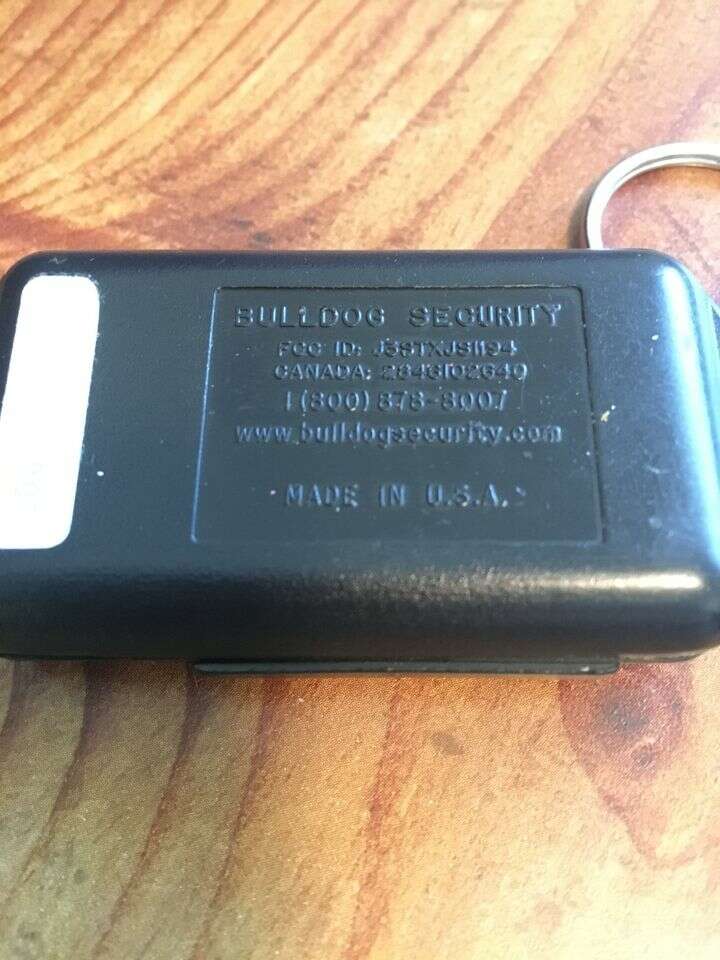 Bulldog Security Fob FCC ID J3STXJS1194 It is retractable which makes it smaller. Might need new batteries. Like new never used.