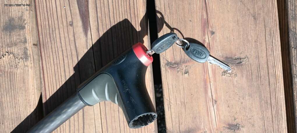 $10. Each, 3/4 cable 54 in long wrapped in rubber coating, locks with keys.