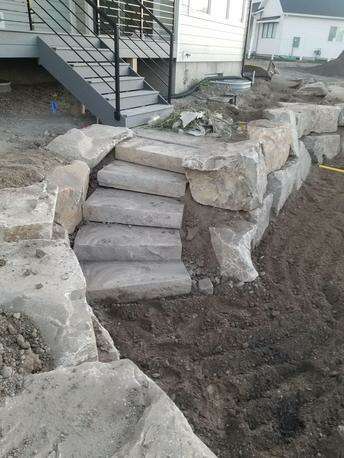 We specialize in high-quality rock retaining walls, bringing over 30 years of experience in crafting durable and visually appealing stone structures. Whether you need a small porch wrap, window well, walkout basement, or a large engineered retaining wall, we have the expertise to handle projects of any size.