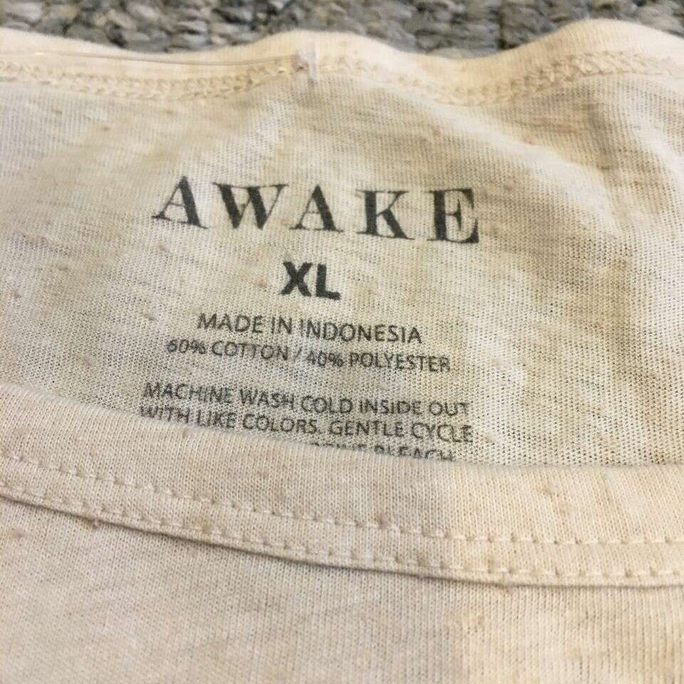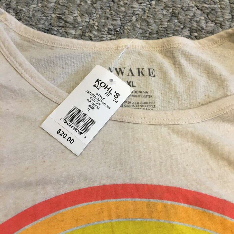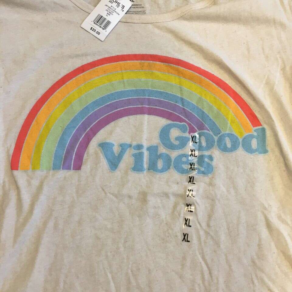 Brand new, still has original tag from Kohls. Super cute vintage wash Good Vibes tee by Awake clothing. Size XL. Fabric is 60% Cotton, 40% Polyester.