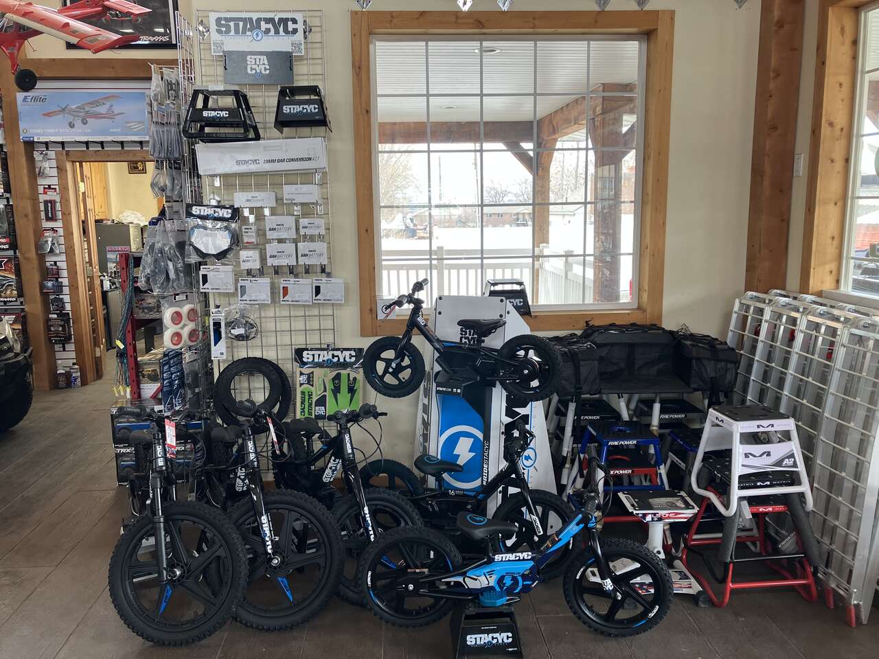 We are a dealer for E-RIDE PRO, Sur-ron, Talaria, Electric Motion, Rawrr (Mantis), RFN, 79 BIKE, GREENGER and Stacyc. They all produce eclectic powered motorcycles. We also have thousands of parts and accessories in stock to support them, plus over 5,000 sq feet of space to service or accessorize them! Prices start at $3,399 in mid-sized and $2,799 for youth e-moto (RAWRR Mantis Mini)