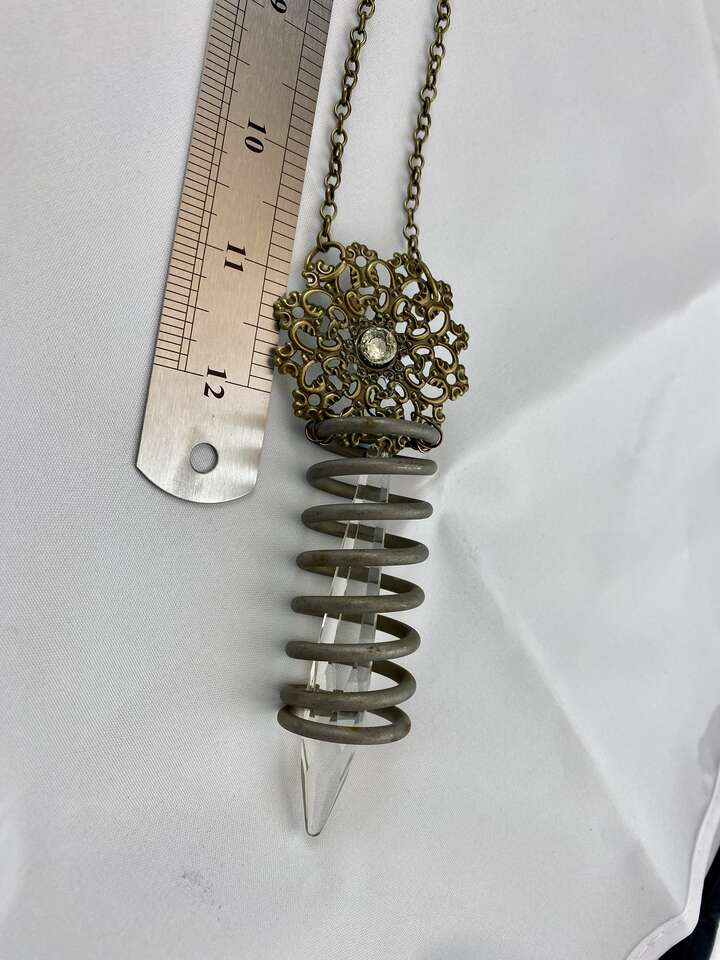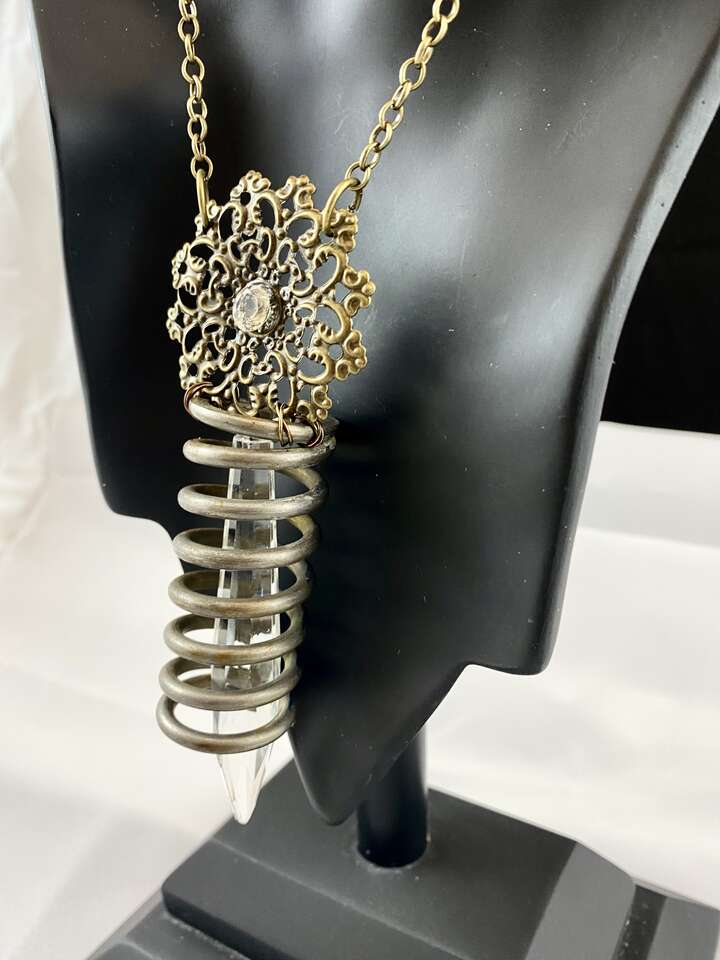 Vintage Salvage Shabby Chic Bling - Industrial Spring Chandelier Crystal Necklace - Long Bronze Chain - C PICS. Very Unique Statement Piece. Blends well with Boho.